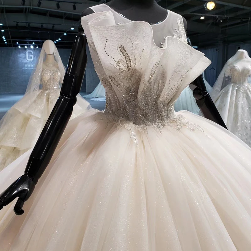 Special Offer فستان زفاف من الدانتيل HTL1062 فستان زفاف دبي موضة جديدة بدون أكمام خاص برقبة دائرية فساتين زفاف فاخرة مقاس كبير Suknie Slubne Discount 50% Today!