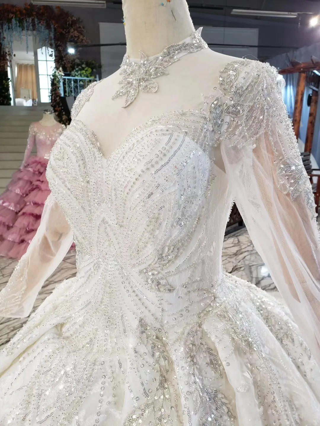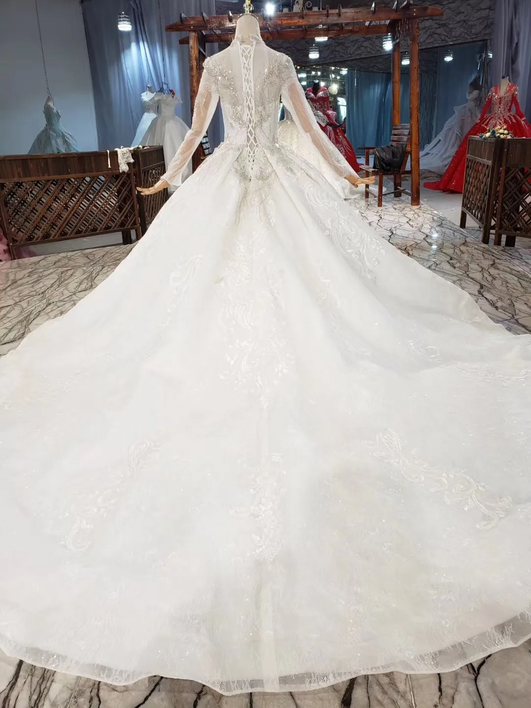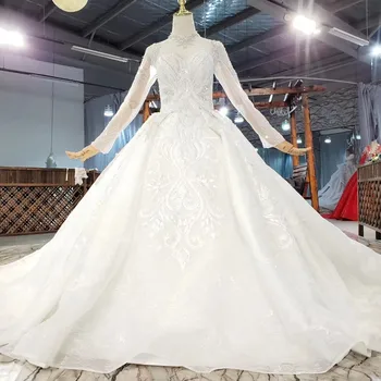 Special Offer 100% عمل حقيقي 2021 دبي الأميرة الفاخرة الزفاف الإسلامي فستان الزفاف الكامل الخرز كم طويل مذهلة فساتين الزفاف Discount 15% Today!