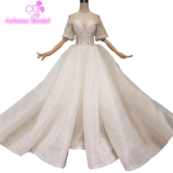 Special Offer فساتين زفاف فاخرة عتيقة من فساتين الزفاف مصنوعة خصيصاً بسعر خاص لعام 2019 ، فساتين زفاف منفوشة بأكمام طويلة من الدانتيل مطرز بالخرز Discount 20% Today!
