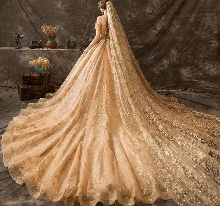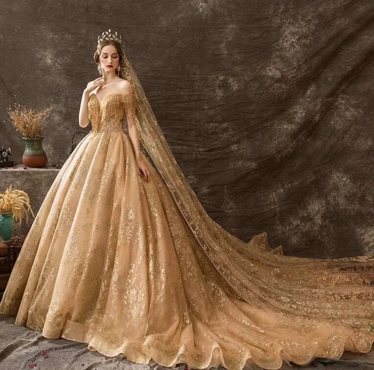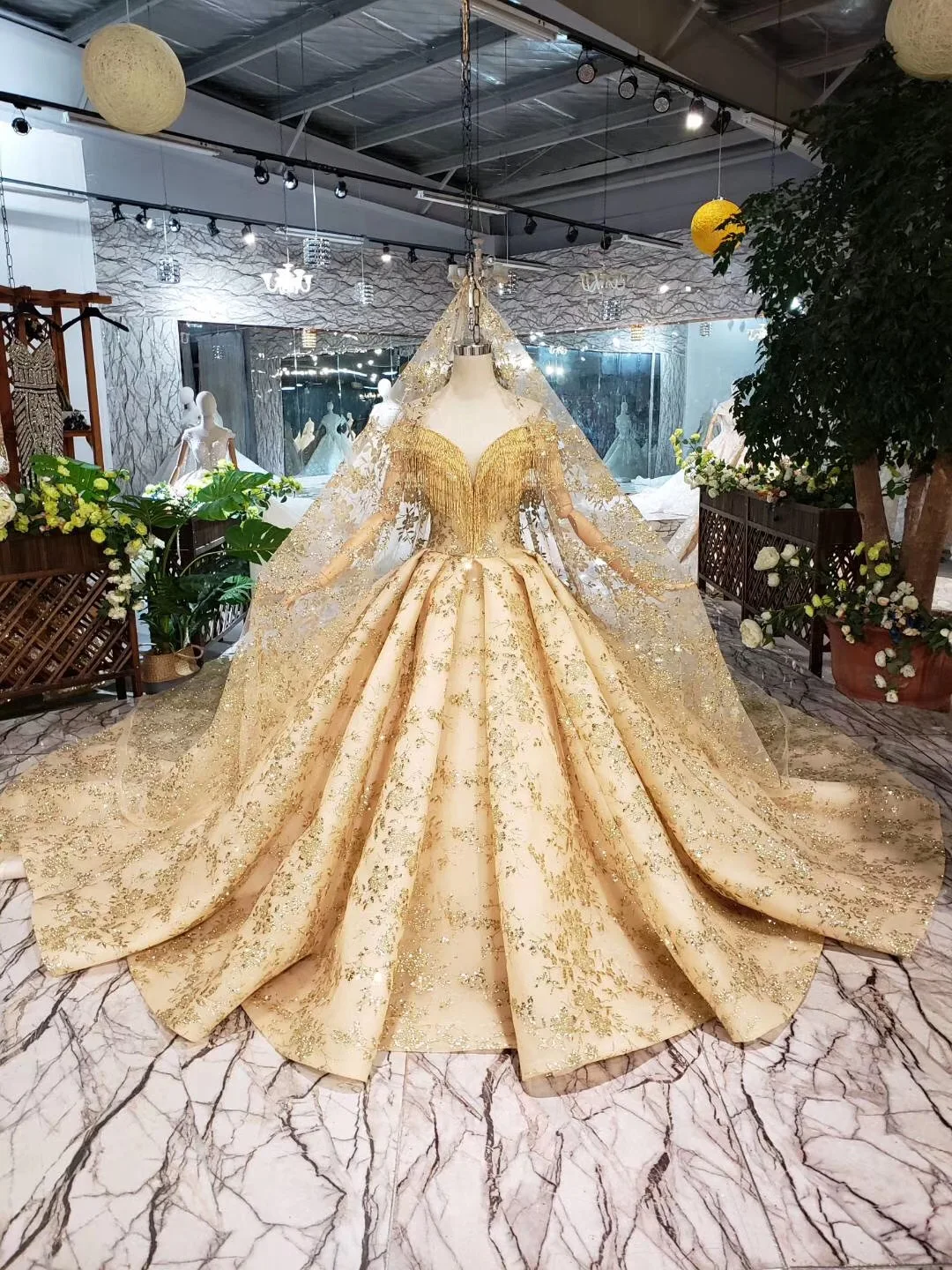 Special Offer فساتين زفاف لحفلات الزفاف من الدانتيل باللون الذهبي 2019 برقبة قارب وأربطة على شكل زهور ، فساتين حفلات فاخرة من المملكة العربية السعودية Discount 29% Today!