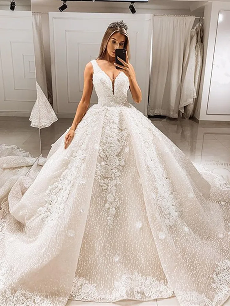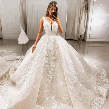 Special Offer مثير الخامس الرقبة الدانتيل الكرة ثوب فساتين الزفاف 2020 أنيقة السباغيتي الأشرطة كاتدرائية قطار الزفاف زي العرائس رداء دي ماري Discount 40% Today!