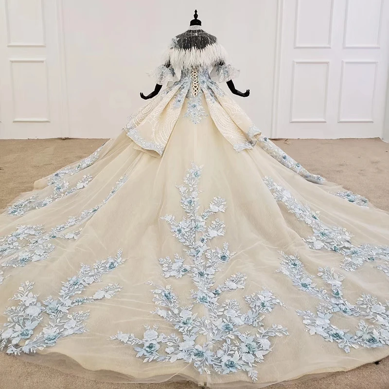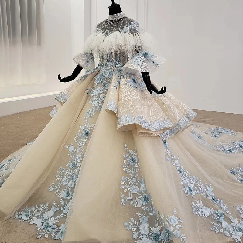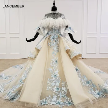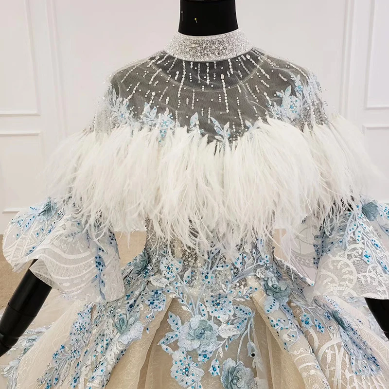Special Offer فستان زفاف فاخر وملون 2020 من HTL1112 فستان زفاف نصف كم مزين برقبة على شكل ريشة Discount 55% Today!