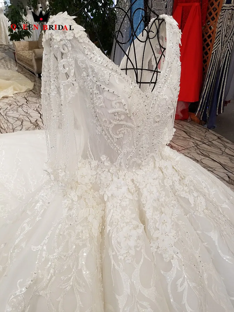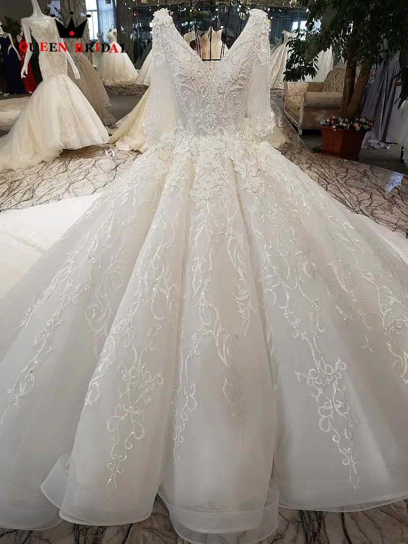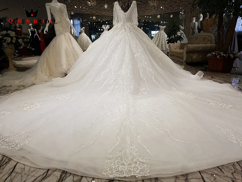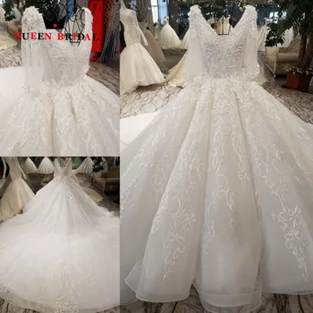 Special Offer فساتين زفاف فاخرة فاخرة من روب دي ماري موضة 2020 برقبة على شكل حرف V من الدانتيل المزيّن بالخرز كريستال Vestido De Noiva QUEEN للزفاف WD103 Discount 23% Today!