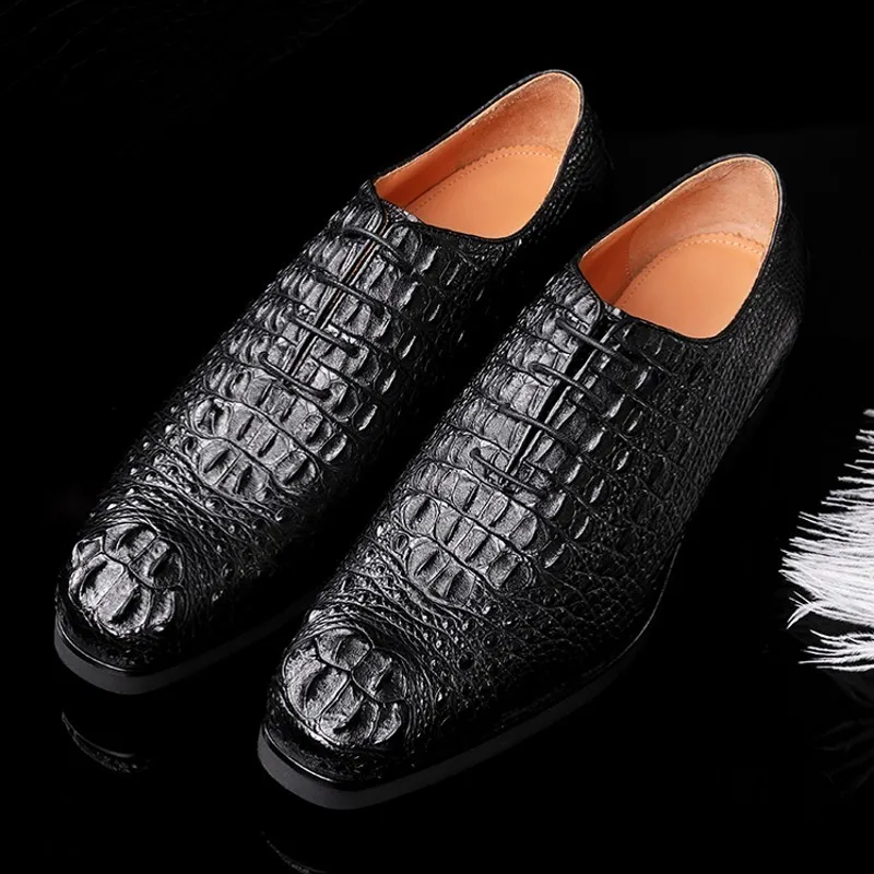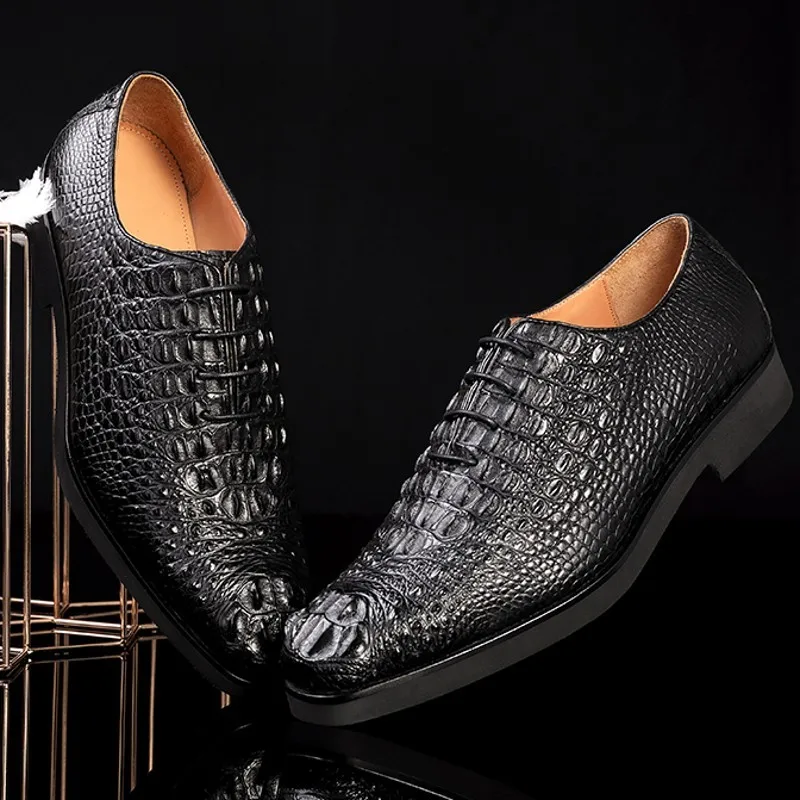 Special Offer رجل فاخر التمساح جلد طبيعي الذكية عادية اليورو قمة الموضة ماركة الدانتيل يصل جولة تو ملابس الحفلات الذكور اللباس أحذية Discount 90% Today!