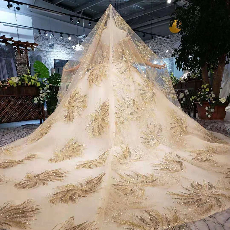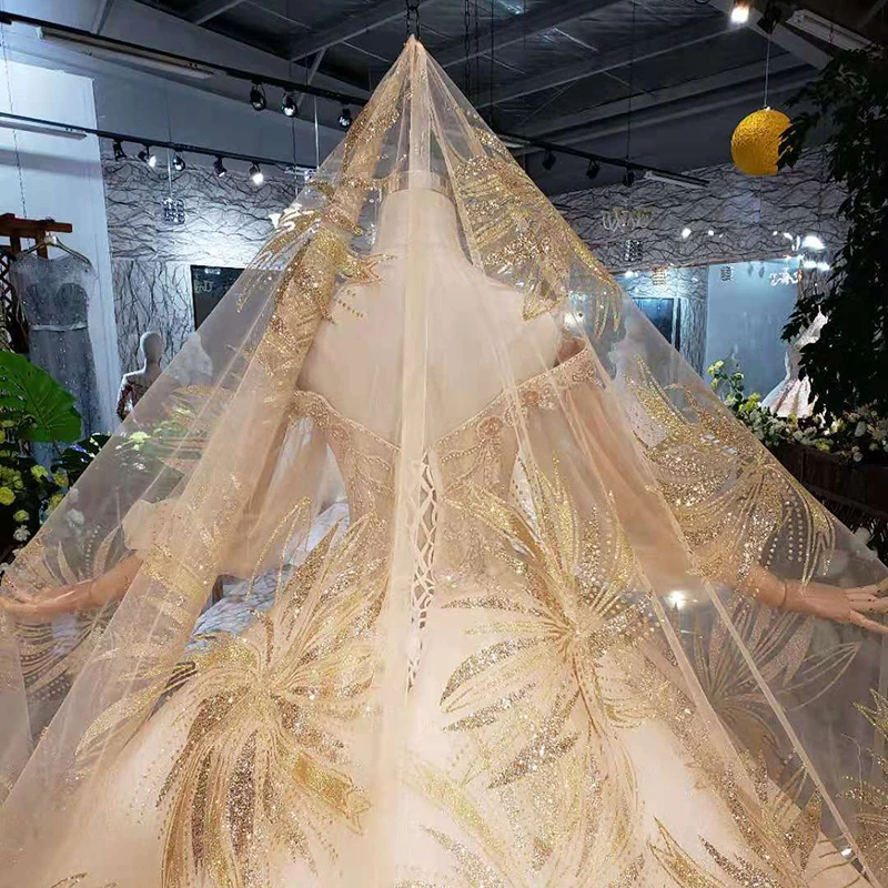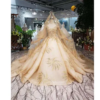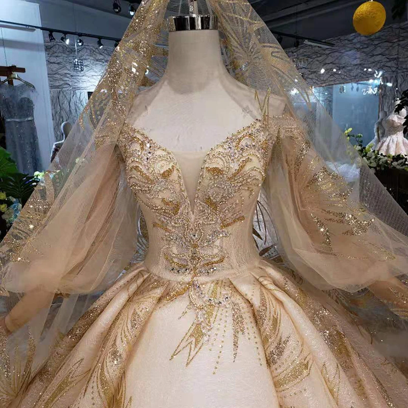 Special Offer BGW HT42910 الشمبانيا فساتين الزفاف مع طرحة زفاف فانوس كم الخامس الرقبة الدانتيل يصل الظهر فستان الزفاف الذهبي الدانتيل ثوب زفاف Discount 56% Today!