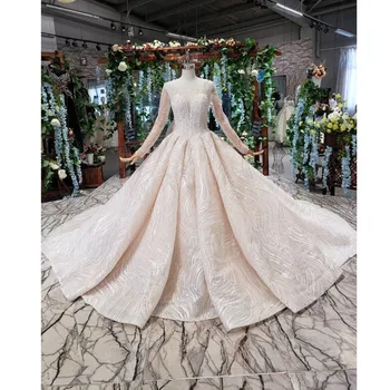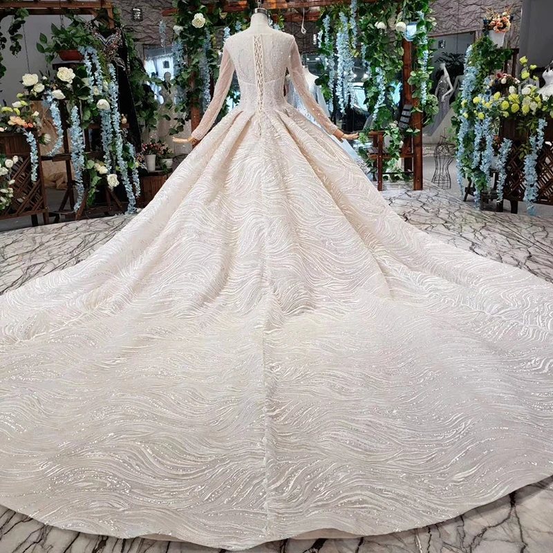 Special Offer BGWHT42226 فساتين زفاف فاخرة الراقية مع ذيل تول الأكمام الطويلة س الرقبة الكرة ثوب ثوب زفاف المواد Vestidos De Boda Discount 50% Today!