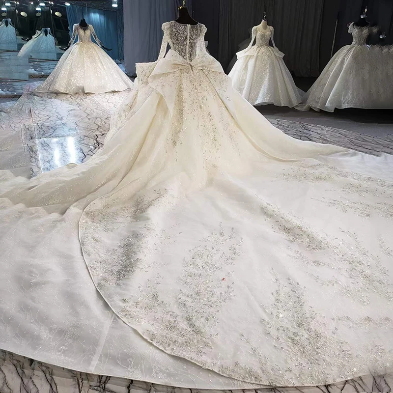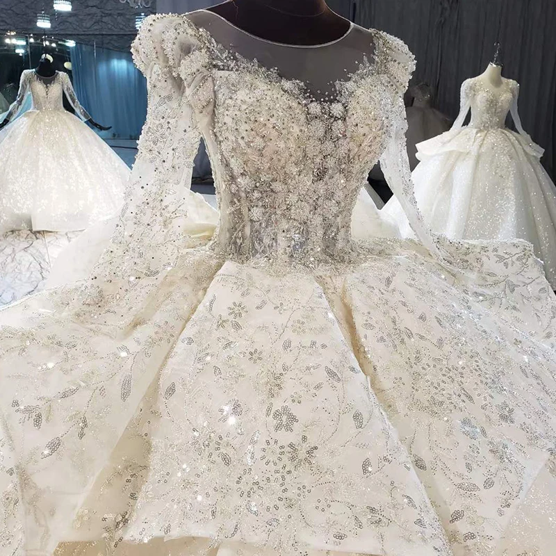 Special Offer HTL2010 أبيض مطرزة مطرز بالخرز فستان الزفاف 2020 كم طويل زين فستاين سهرة/فساتين الحفلات V الرقبة الدانتيل حتى الظهر Discount 55% Today!