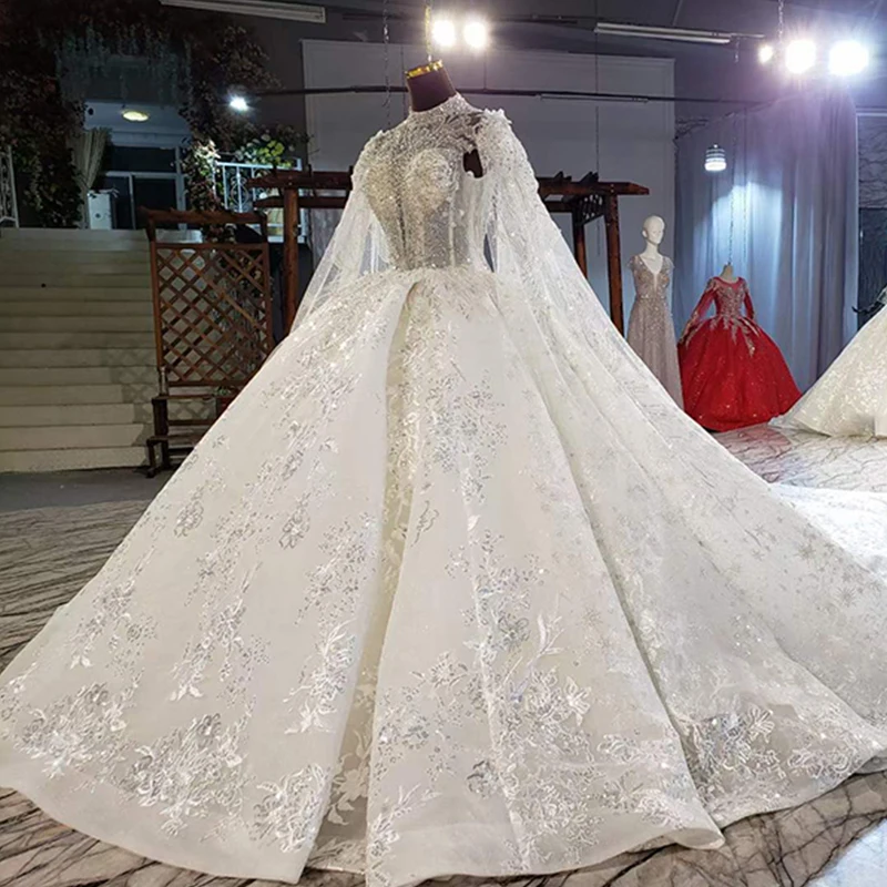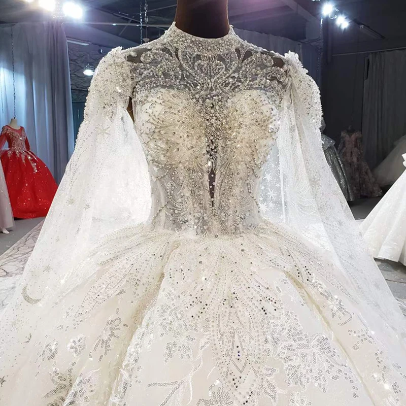 Special Offer HTL2019 فاخر رقبة عالية كريستال مطرز بالخرز فستان الزفاف 2021 للمرأة فستاين سهرة/فساتين الحفلات كم طويل Discount 55% Today!