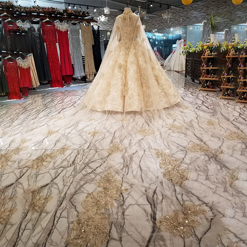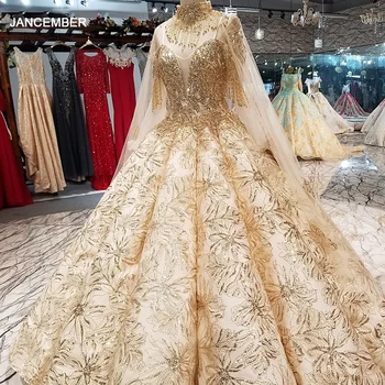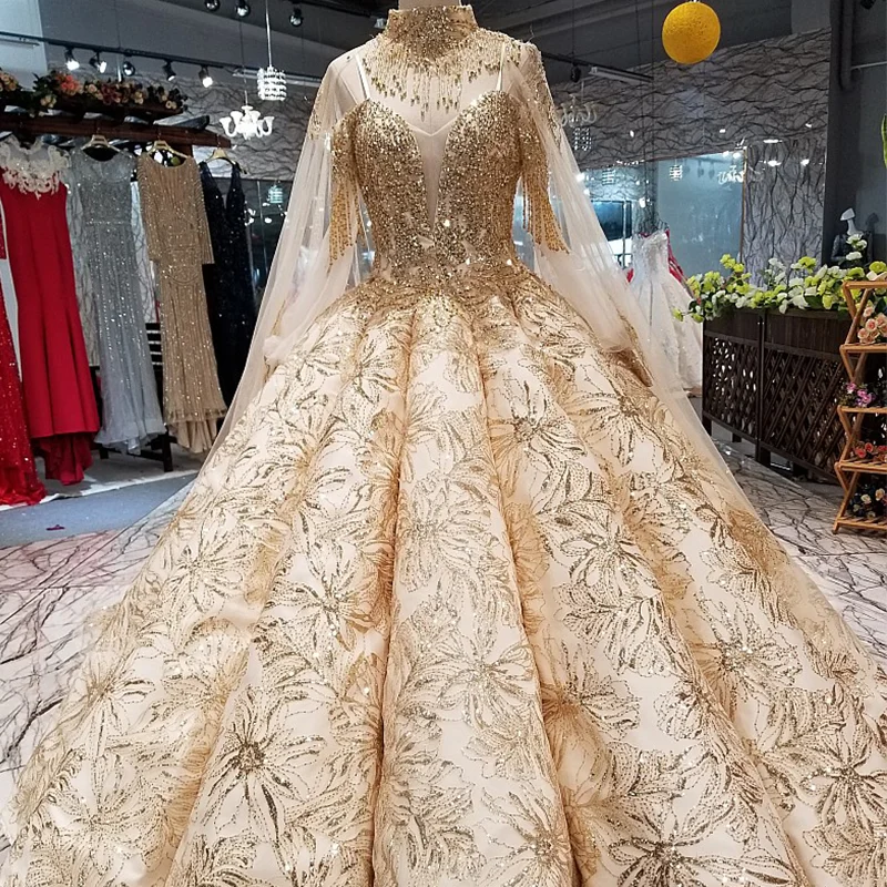Special Offer LS65840 فاخر الذهبي الدانتيل تزيين دبي فستان الزفاف الحبيب قبالة الكتف مطوي فستان عروس مع قلادة ذهبية سوانتنورة Discount 50% Today!