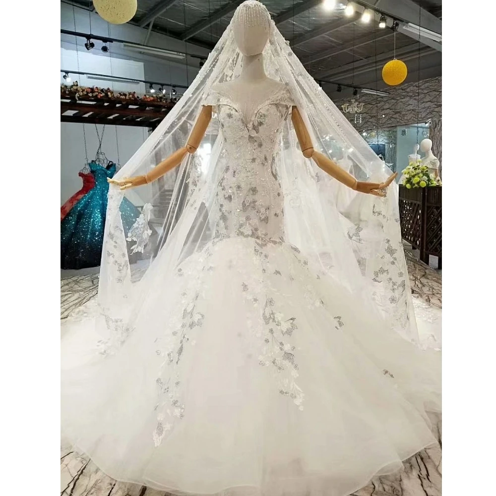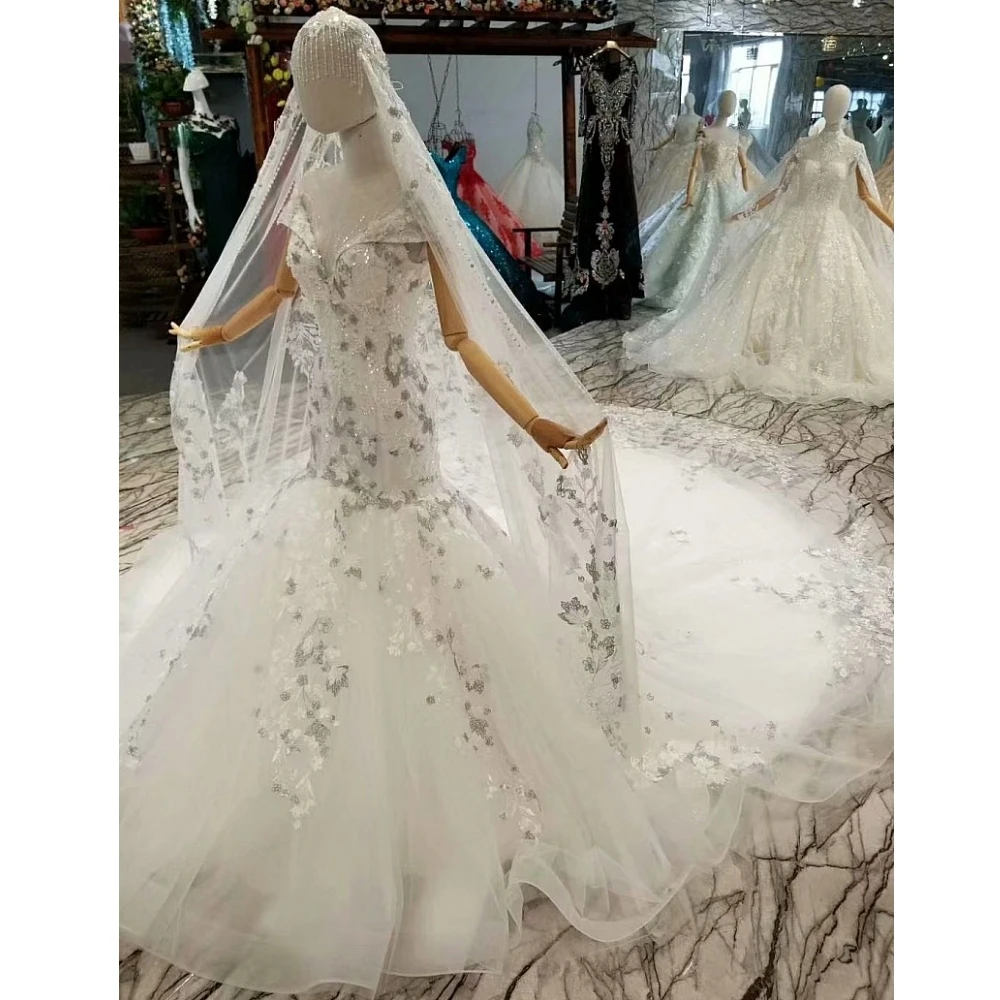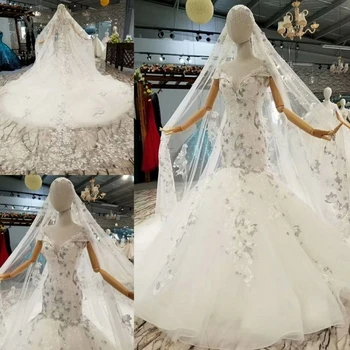 Special Offer فاخر أبيض يدوي حورية البحر فستان الزفاف الدانتيل التطريز فستان زفاف بذيل طويل Discount 0% Today!