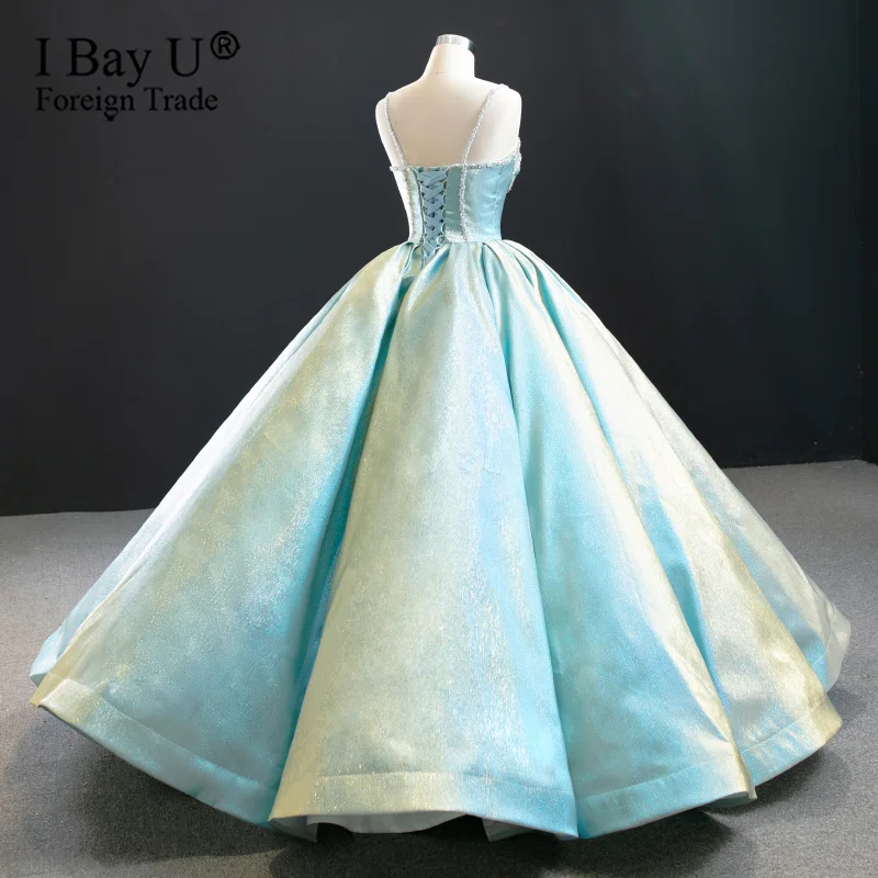 Special Offer فستان زفاف عتيق مطرز بالخرز باللون الأزرق السماوي من Real Image فستان زفاف مطرز بالخرز 2020 فستان زفاف منتفخ Discount 6% Today!