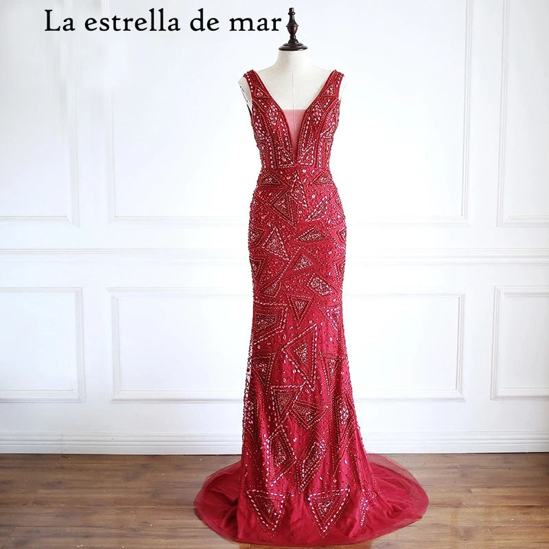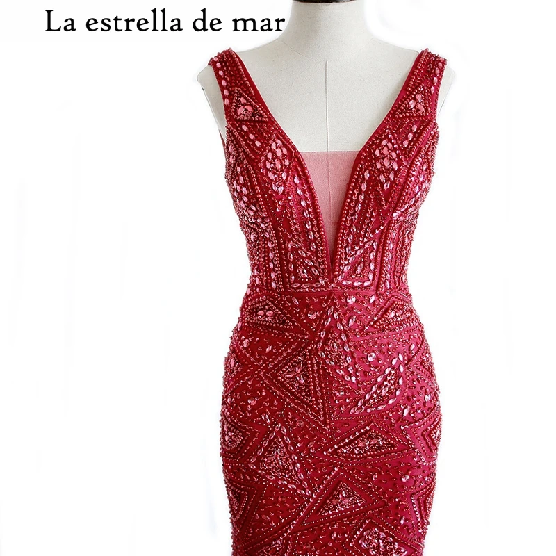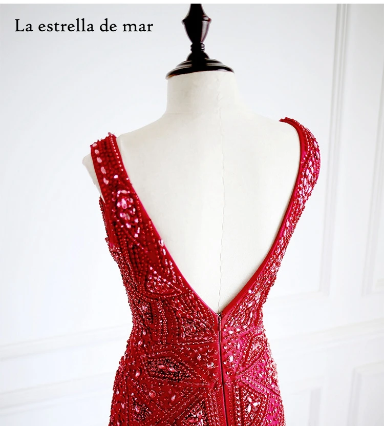 Special Offer حورية البحر Vestidos De Fiesta De Noche جديد الدانتيل الكريستال الخامس الرقبة عارية الذراعين الأحمر دبي فستان سهرة فاخر Abiti Da Sera فساتين حفلات Discount 36% Today!