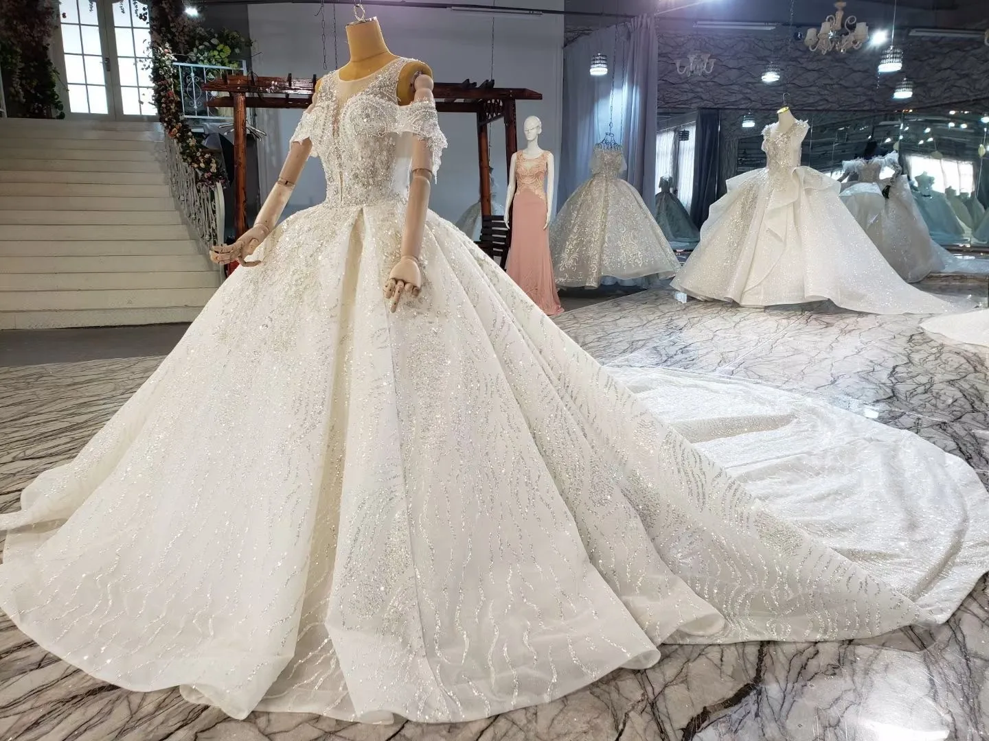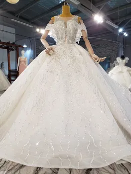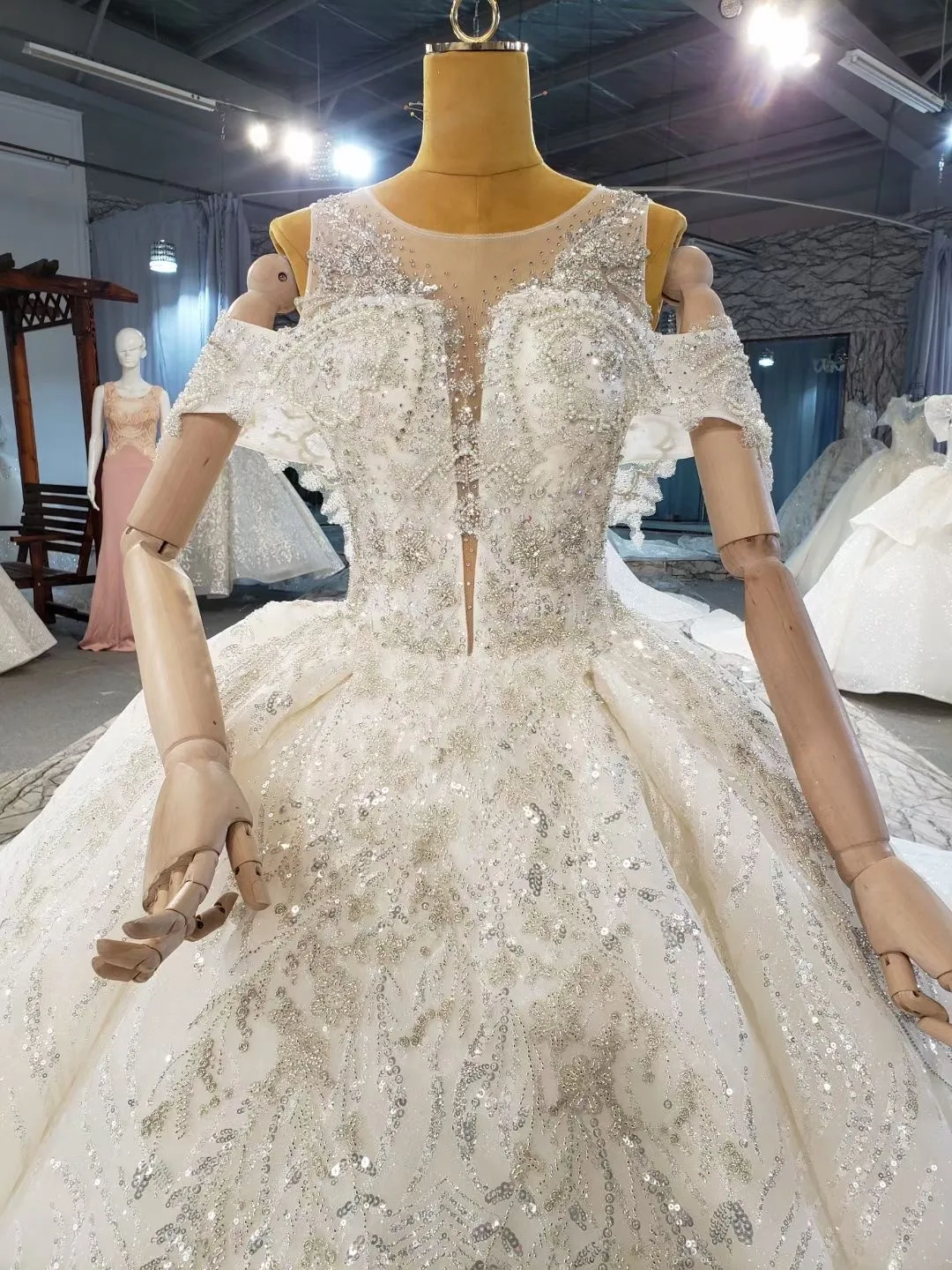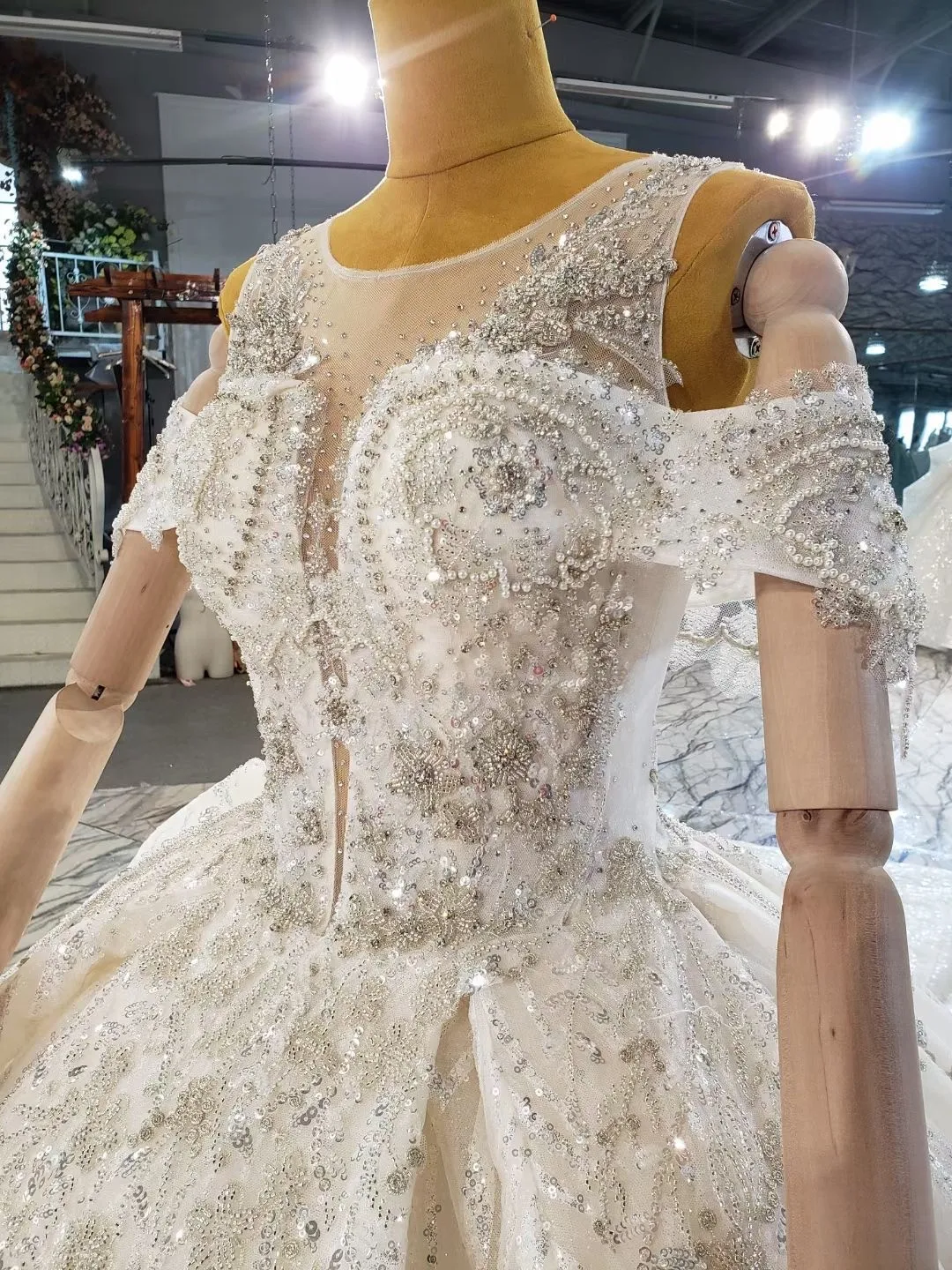 Special Offer ثوب الزفاف الكرة الفاخرة قبالة الكتف كريستال سباركلي الخرز الترتر الدانتيل يزين زي العرائس الفاخرة Discount 19% Today!