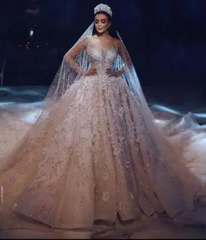 Special Offer أماندا ديزاين دبي الملكي كم طويل الدانتيل زين كريستال الزهور فستان الزفاف الفاخرة Discount 19% Today!
