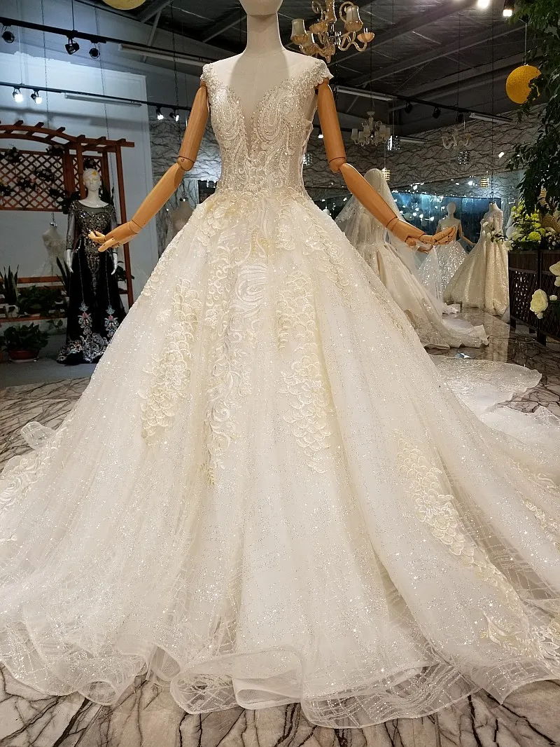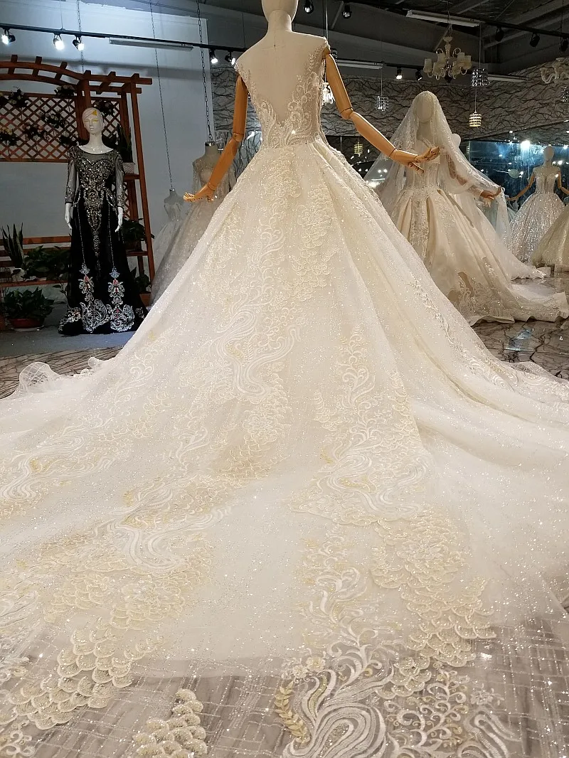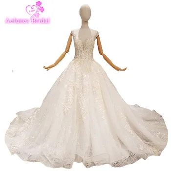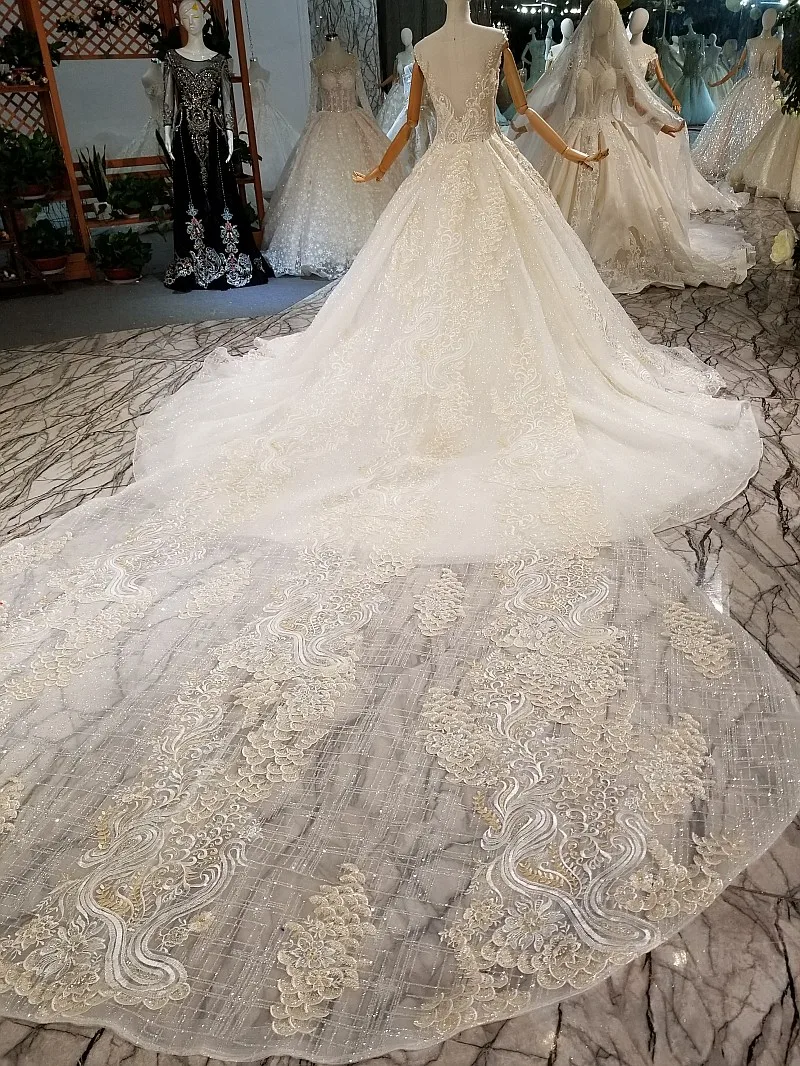 Special Offer 2018 جديد فاخر بلا أكمام الدانتيل حبة سكوب كاتدرائية قطار زي العرائس عارية الذراعين الكرة ثوب قبعة كم خمر فساتين الزفاف Discount 20% Today!