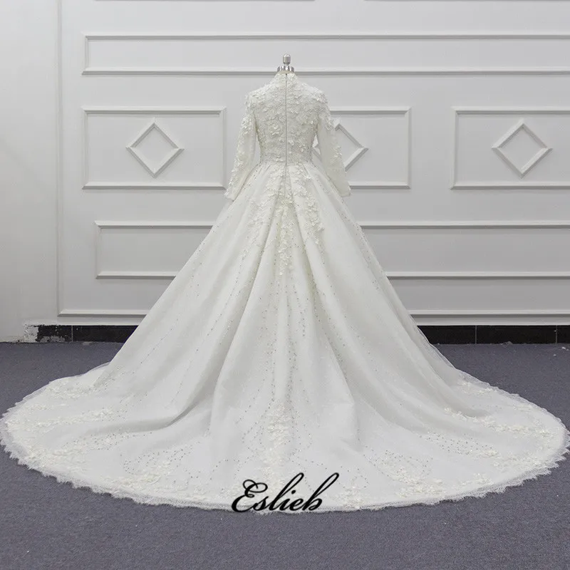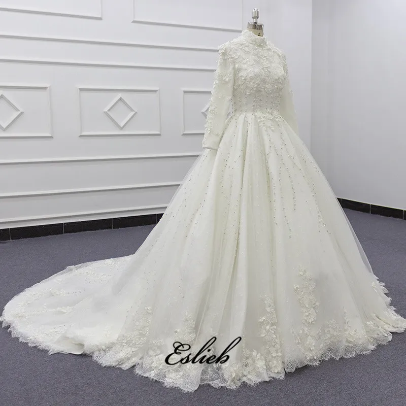 Special Offer جديد رومانسية الخامس الرقبة أنيقة الأميرة فستان الزفاف 2018 طويل الأكمام يزين المشاهير الكرة ثوب Noiva SJ122 Discount 0% Today!