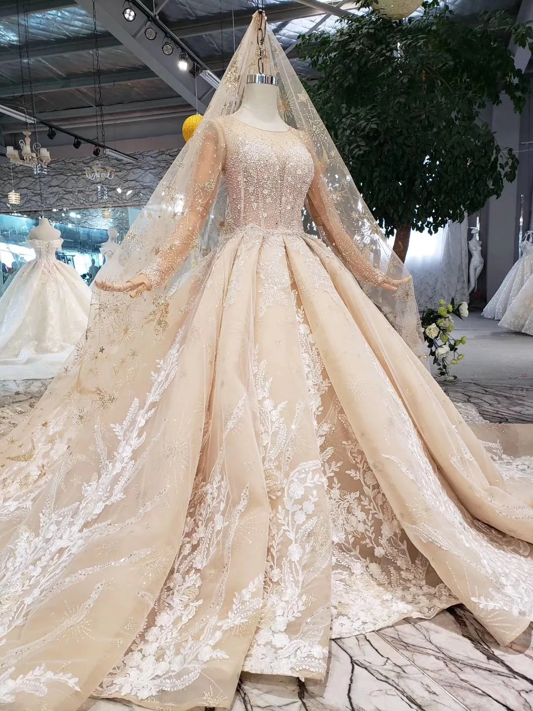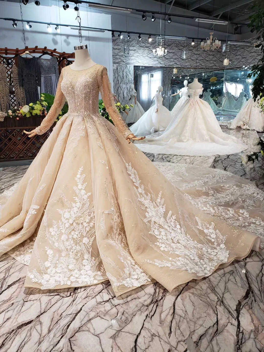 Special Offer فساتين زفاف فاخرة مزينة بالخرز من الدانتيل فستان زفاف بأكمام طويلة من الدانتيل موديل 2019 Robe De Mariage Discount 20% Today!