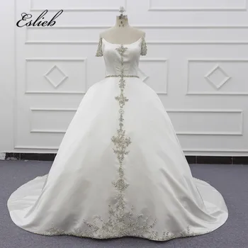 Special Offer مسلم تصاميم الزفاف فساتين الزفاف الكرة ثوب 2019 انظر من خلال الدانتيل نمط أكمام الزفاف اللباس مع بلورات SJ068 Discount 0% Today!