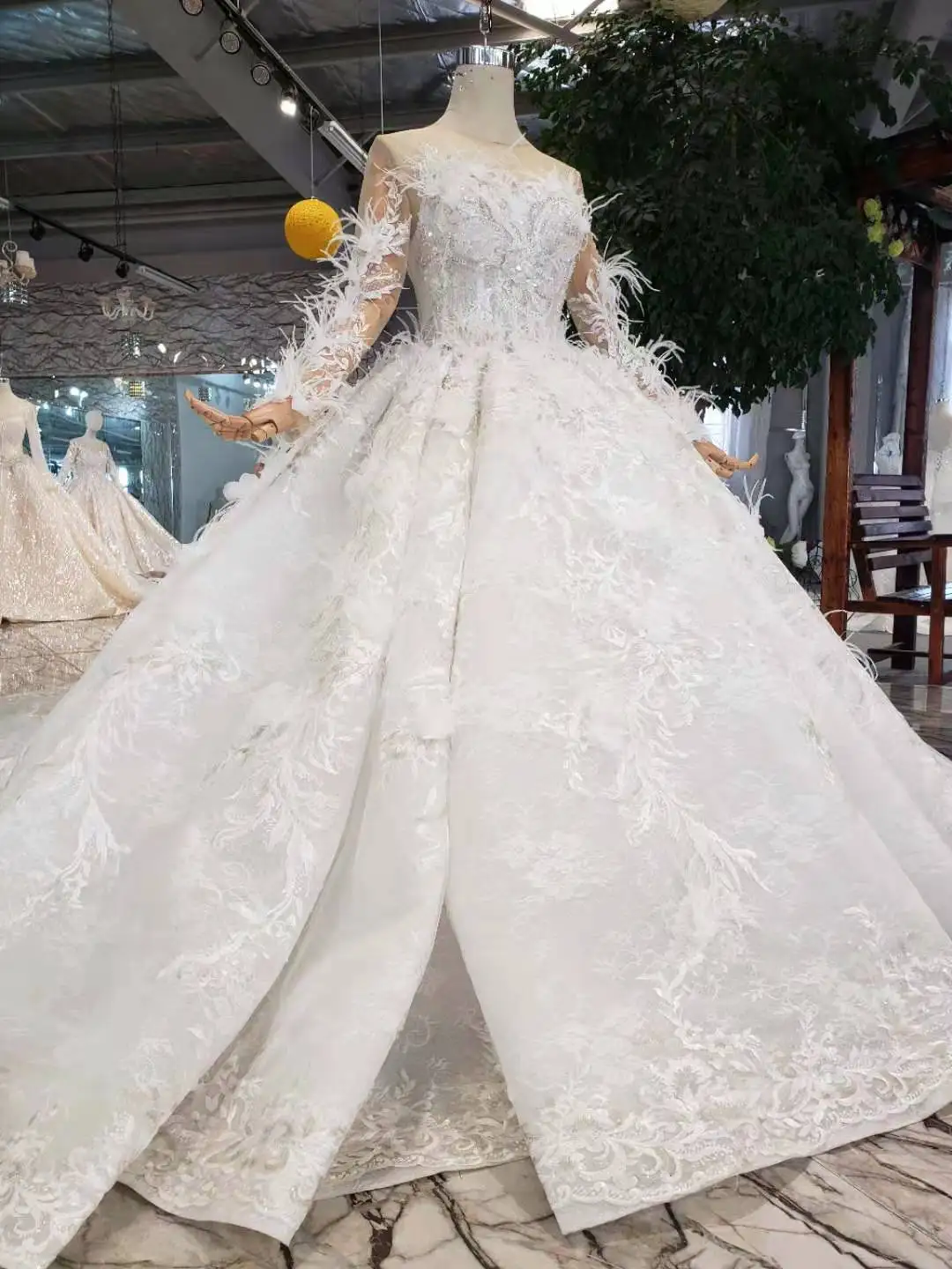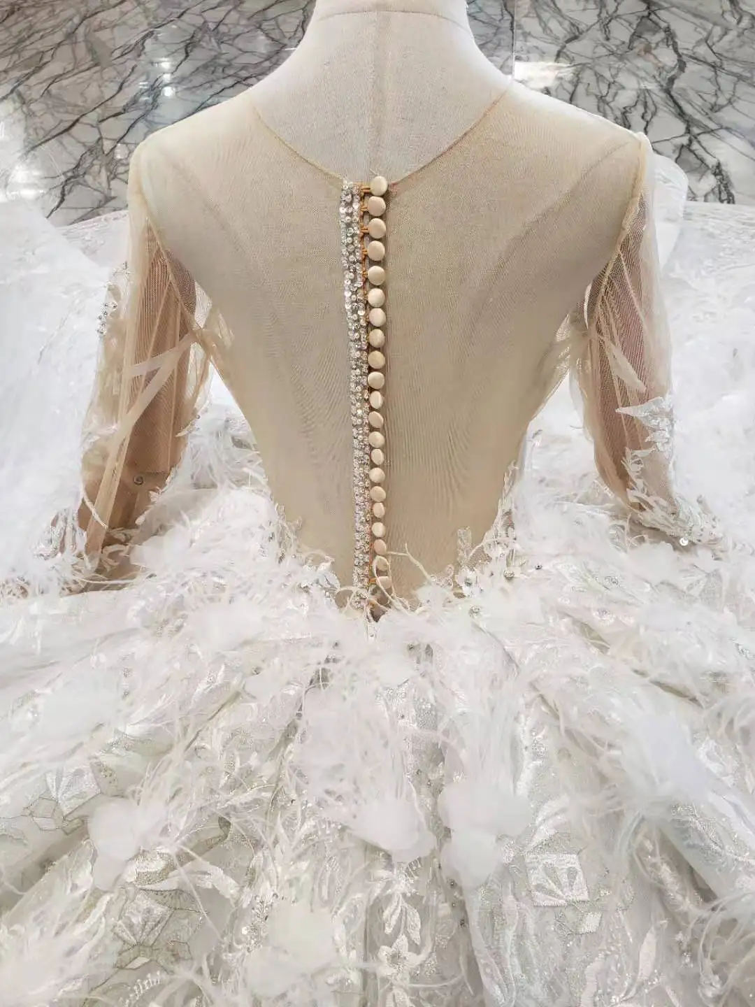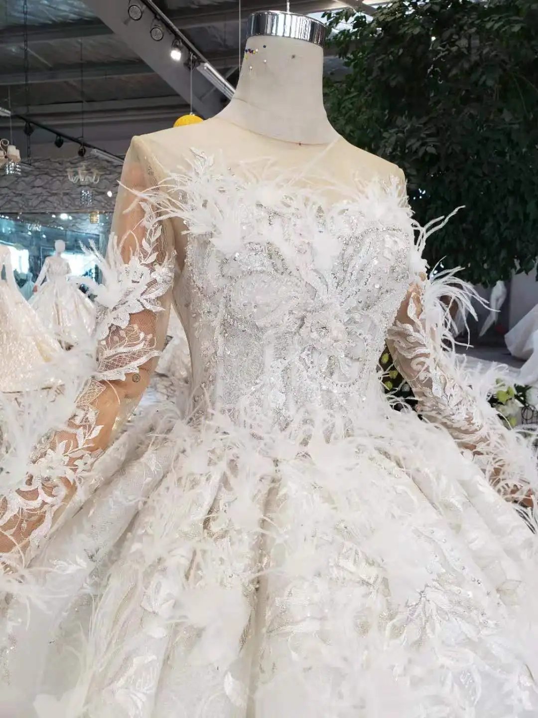 Special Offer 2019 دانتيل كم طويل Vestido De Noiva فستان زفاف فاخر يزين دبي العربية الريش خرز كريستالي الكرة ثوب ثوب زفاف Discount 20% Today!