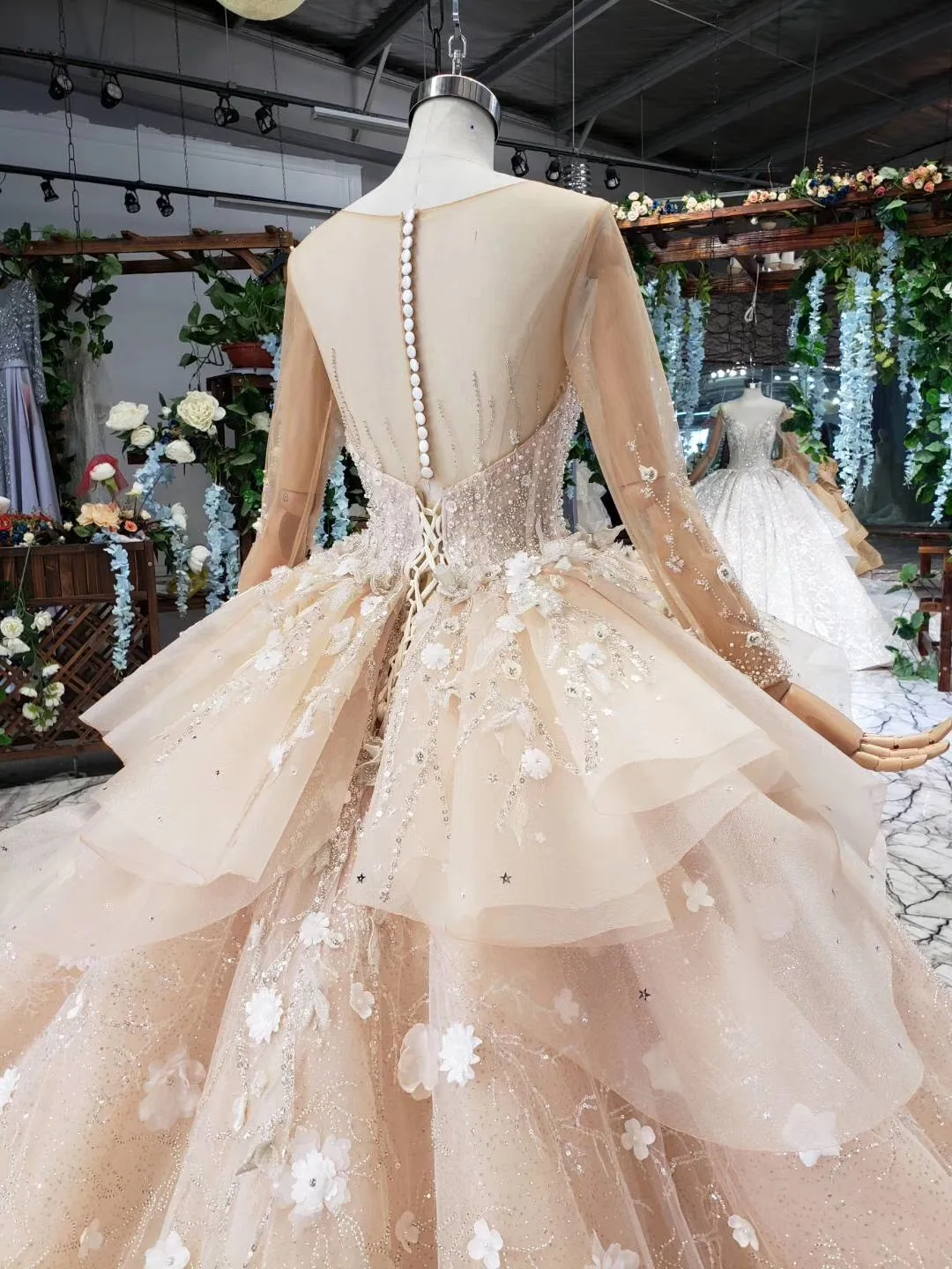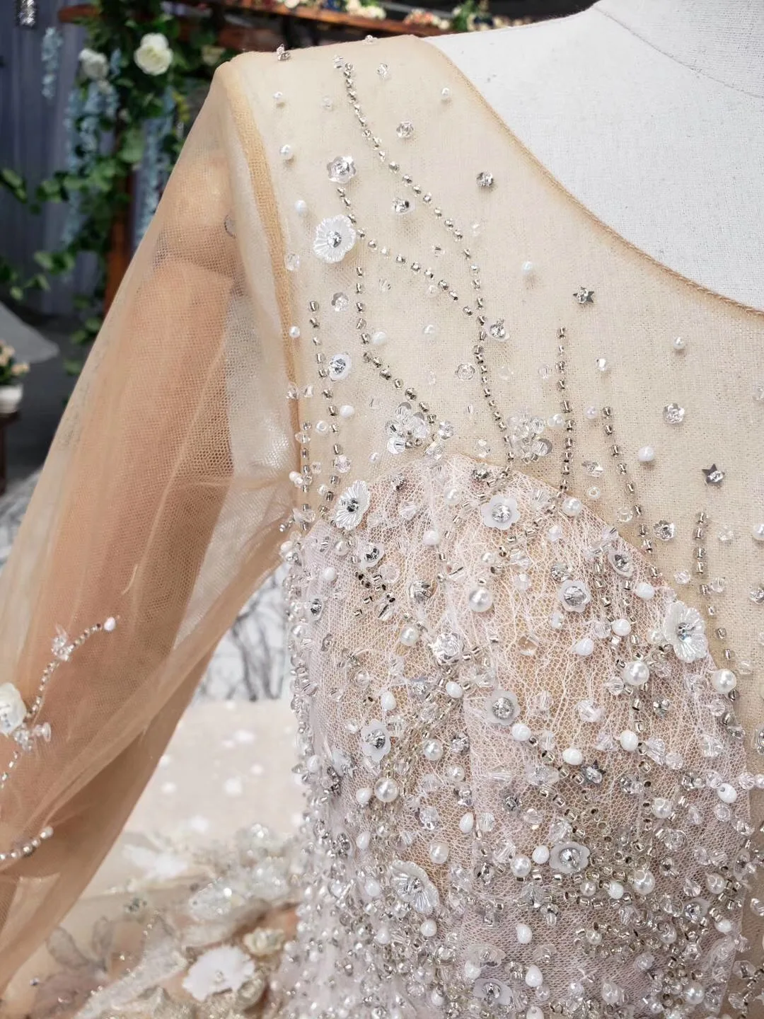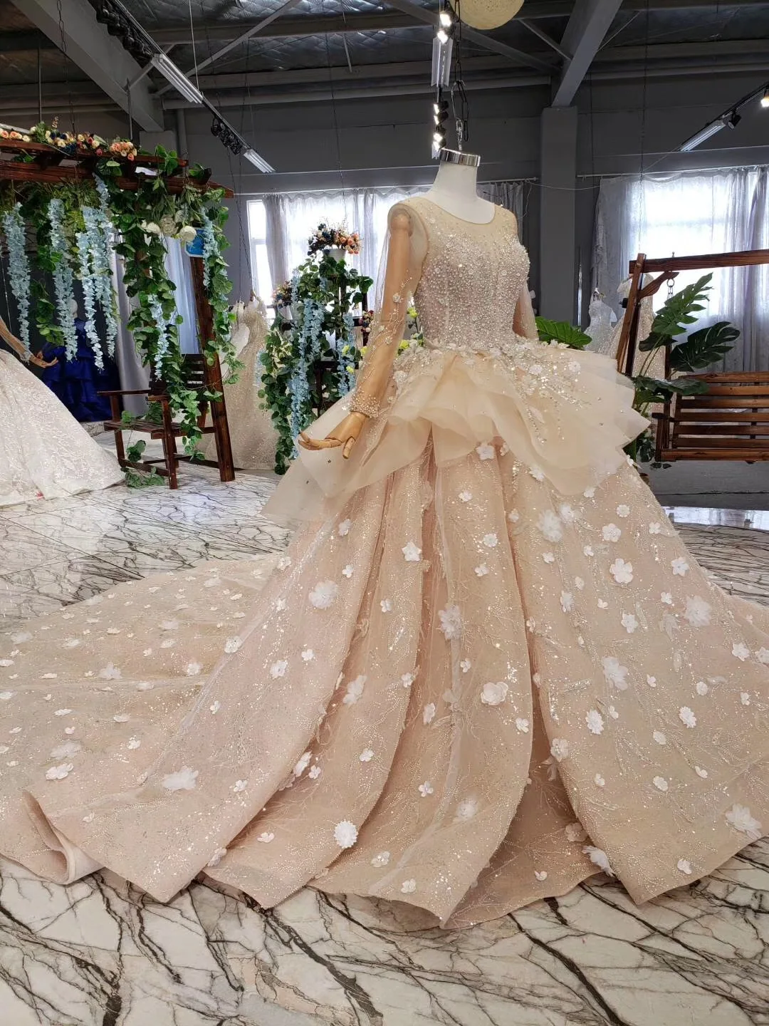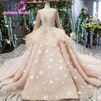 Special Offer دبي فساتين زفاف فاخرة كريستال 2019 لامعة مطرز ثلاثية الأبعاد الزهور فساتين الزفاف مع شفاف كامل الأكمام اللؤلؤ Vestido De Noiva Discount 29% Today!