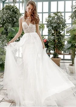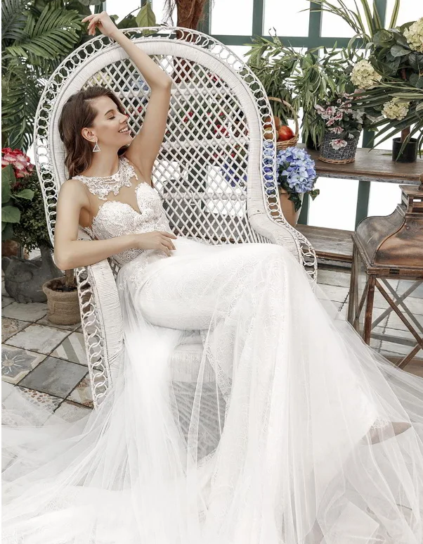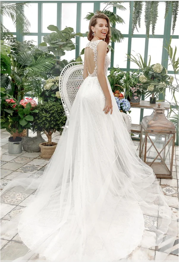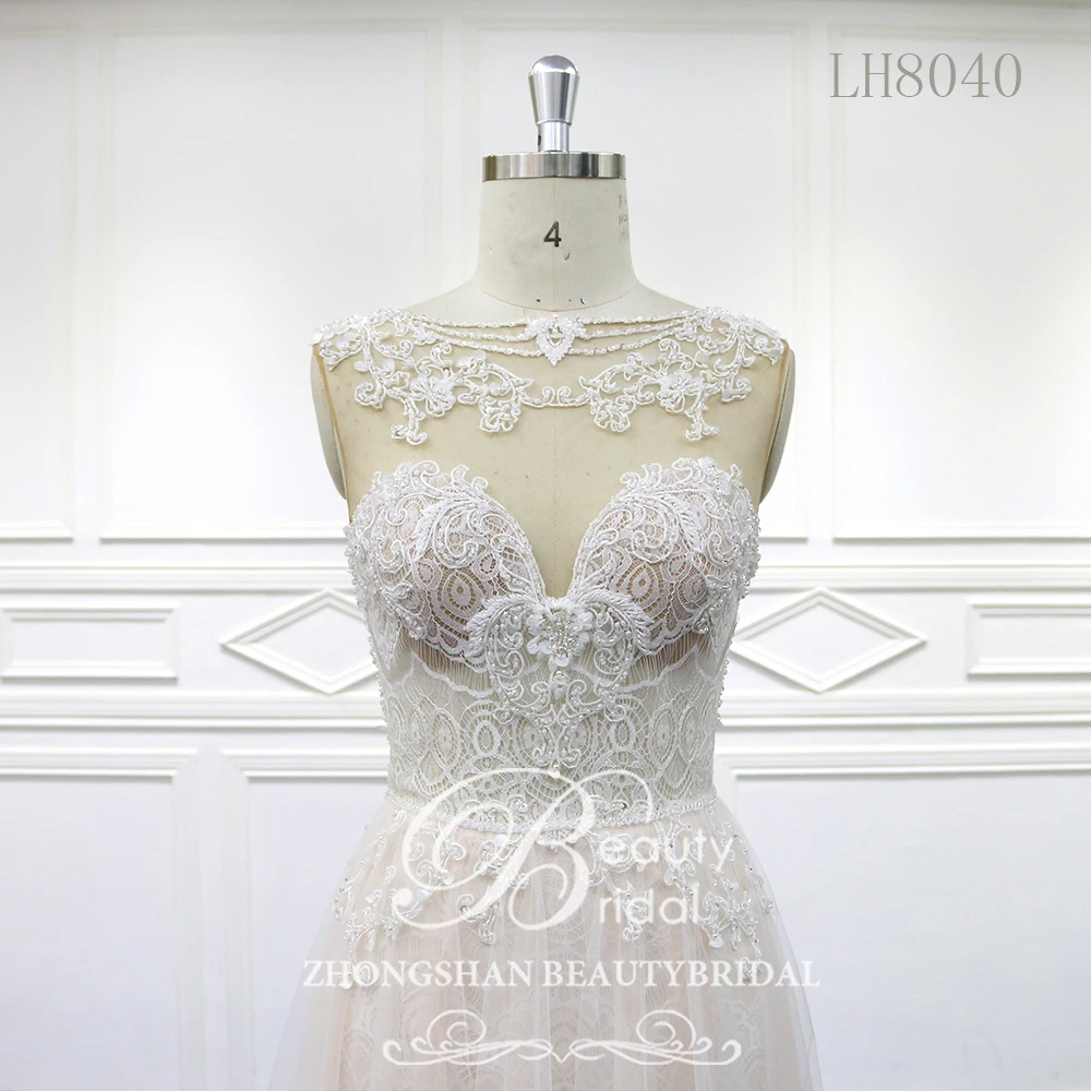 Special Offer 2020 فساتين زفاف 100% صور حقيقية تراين شابل فاخر دانتيل زينة عاري الكتفين فستان زفاف Vestido LH8040 Discount 0% Today!
