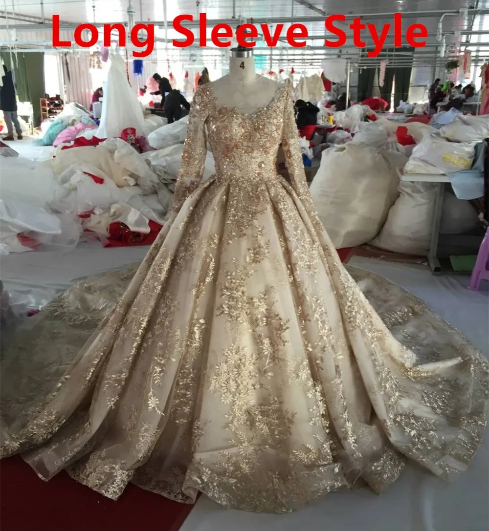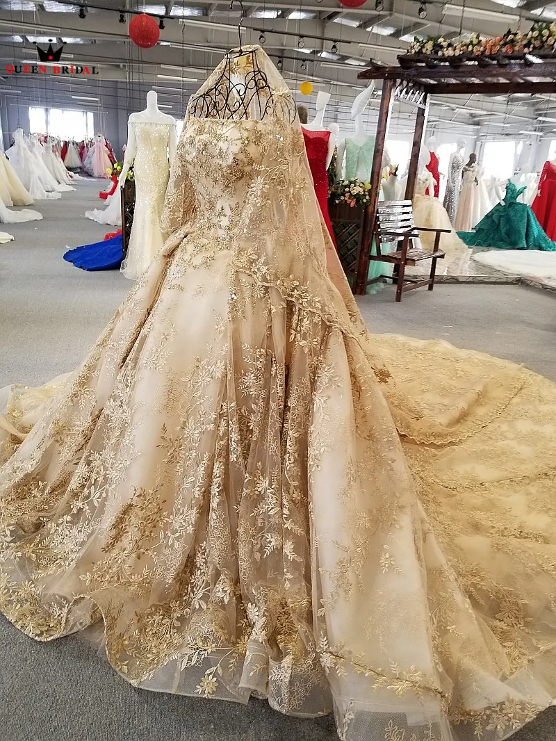 Special Offer فساتين زفاف منفوشة مزينة بالكريستال والدانتيل الذهبي فستان زفاف فاخر مطرز بالخرز 2020 جديد 100% صور حقيقية WD01 Discount 23% Today!