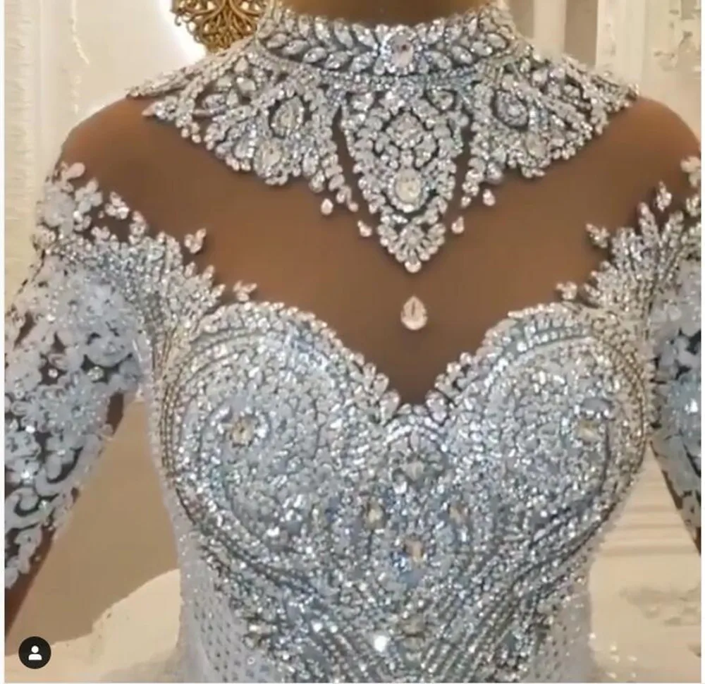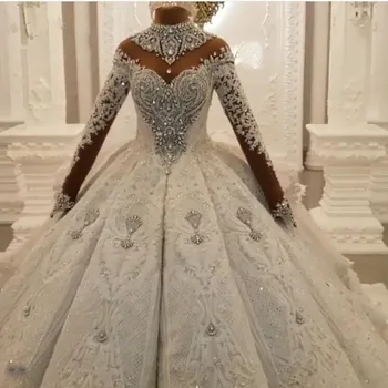 Special Offer جديد فاخر دبي كريستال حجر الراين فساتين زفاف دانتيل زينة كم كامل منتفخ فستاين سهرة/فساتين الحفلات ثلاثية الأبعاد زهرة فستان الزفاف 2020 Discount 14% Today!