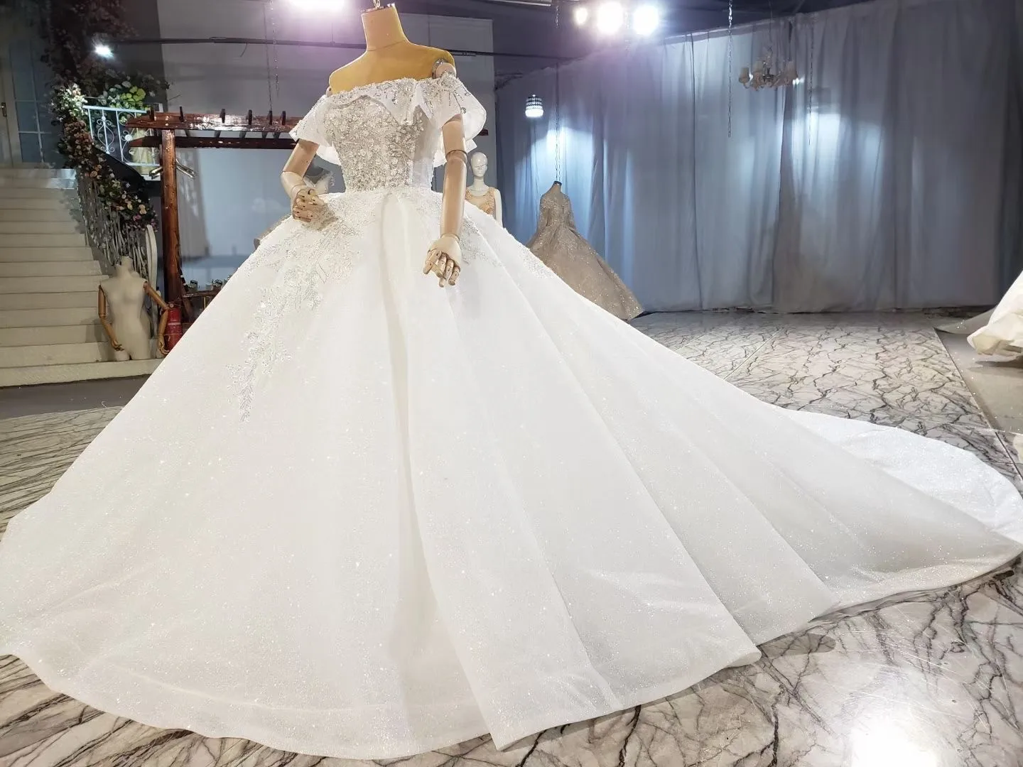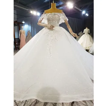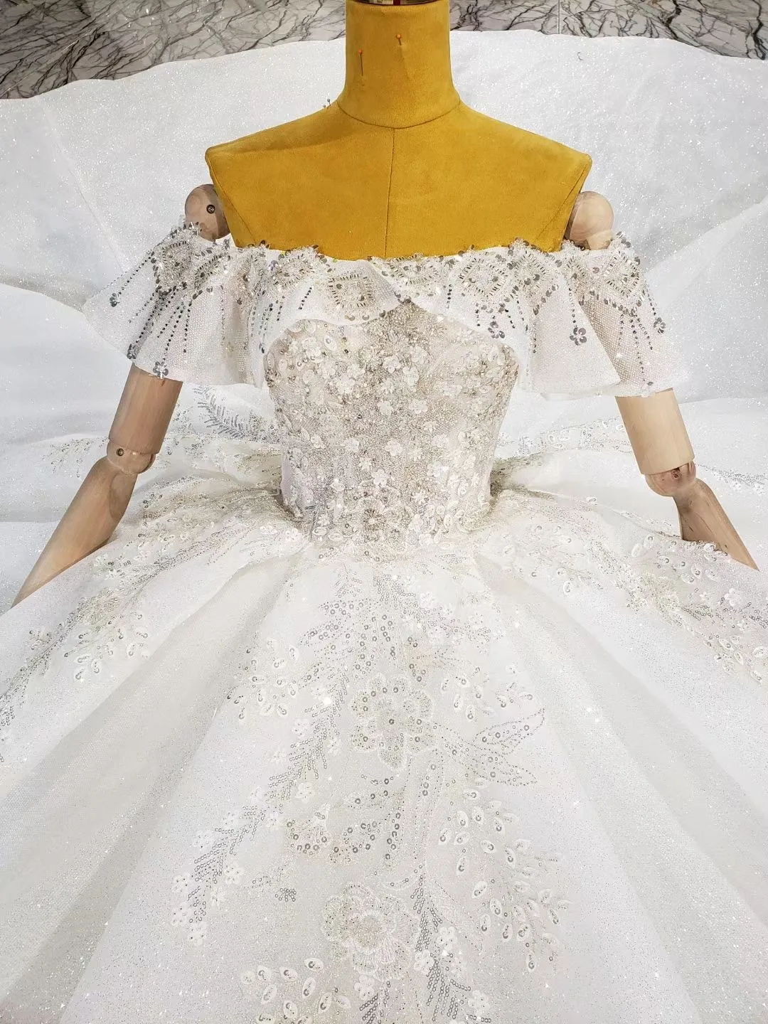 Special Offer مثير قبالة الكتف الكرة ثوب الزفاف 2020 الفاخرة مطرز بلورات الدانتيل يصل الأميرة رداء دي ماري Discount 20% Today!