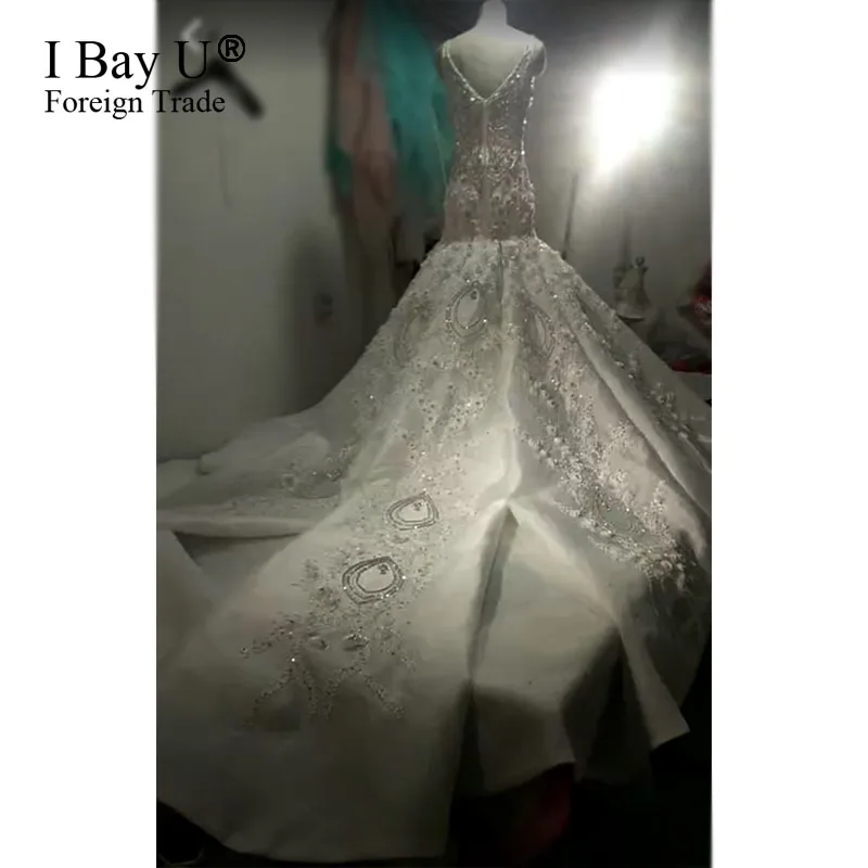 Special Offer رداء دي ماريج فساتين العروس الفاخرة 2020 دبي حورية البحر فساتين الزفاف ذيل محكمة زينة اللؤلؤ مطرز فساتين الزفاف Discount 0% Today!