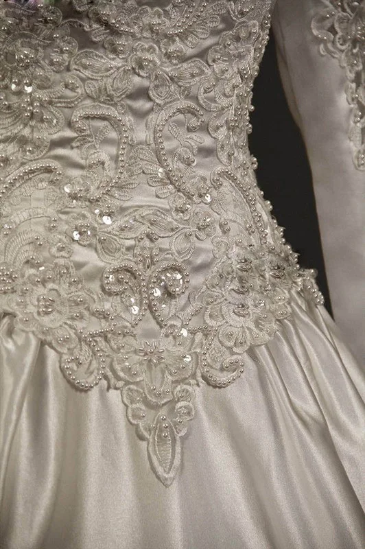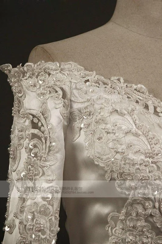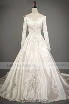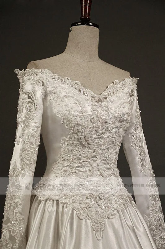 Special Offer شحن مجاني 2020 فساتين أنيقة جديدة رسمية فاخرة صور حقيقية مطرز الكمثرى الزفاف الكرة ثوب طويل الأكمام الدانتيل فستان الزفاف Discount 0% Today!