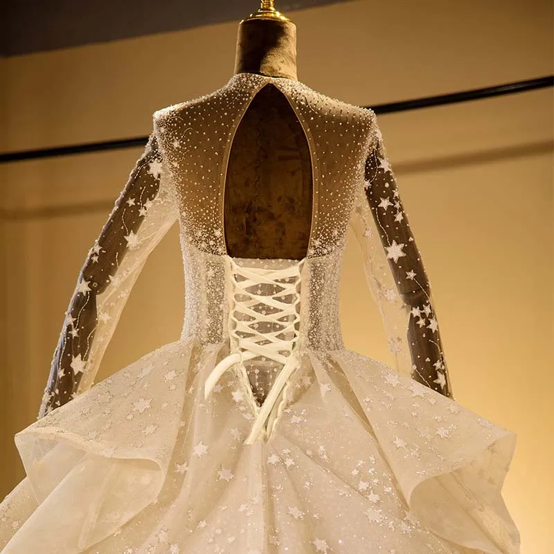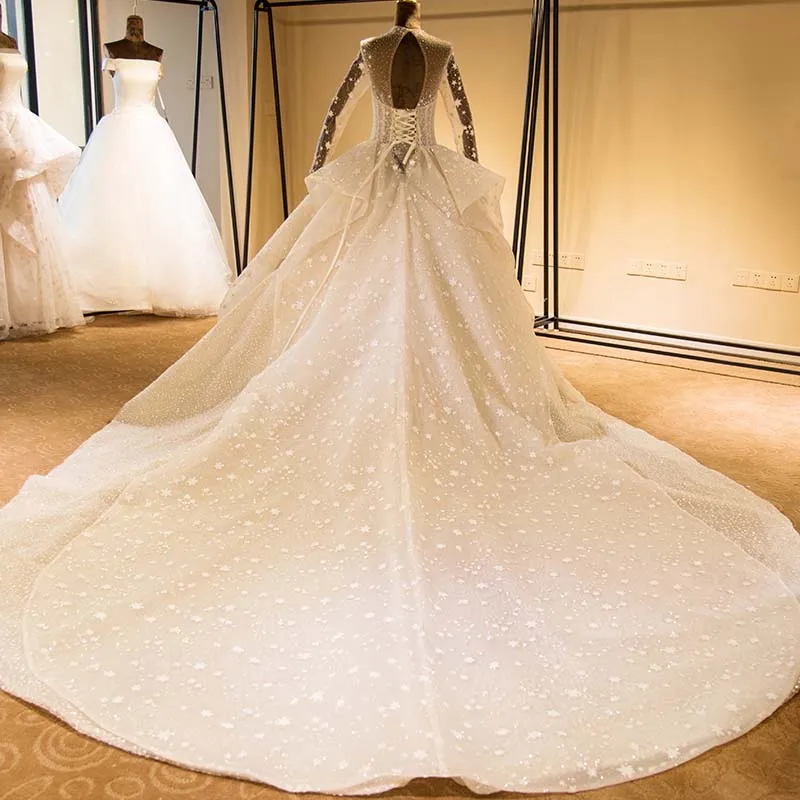 Special Offer 2020 الوافدين الجدد الفاخرة مطرز الدانتيل فساتين الزفاف الخرز فستان زفاف Vestidos De Noiva طويلة الأكمام Discount 35% Today!
