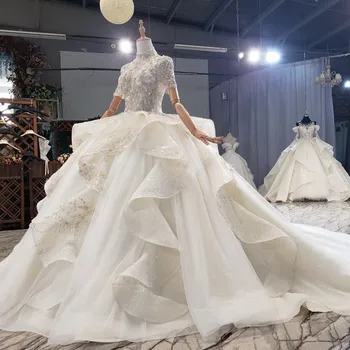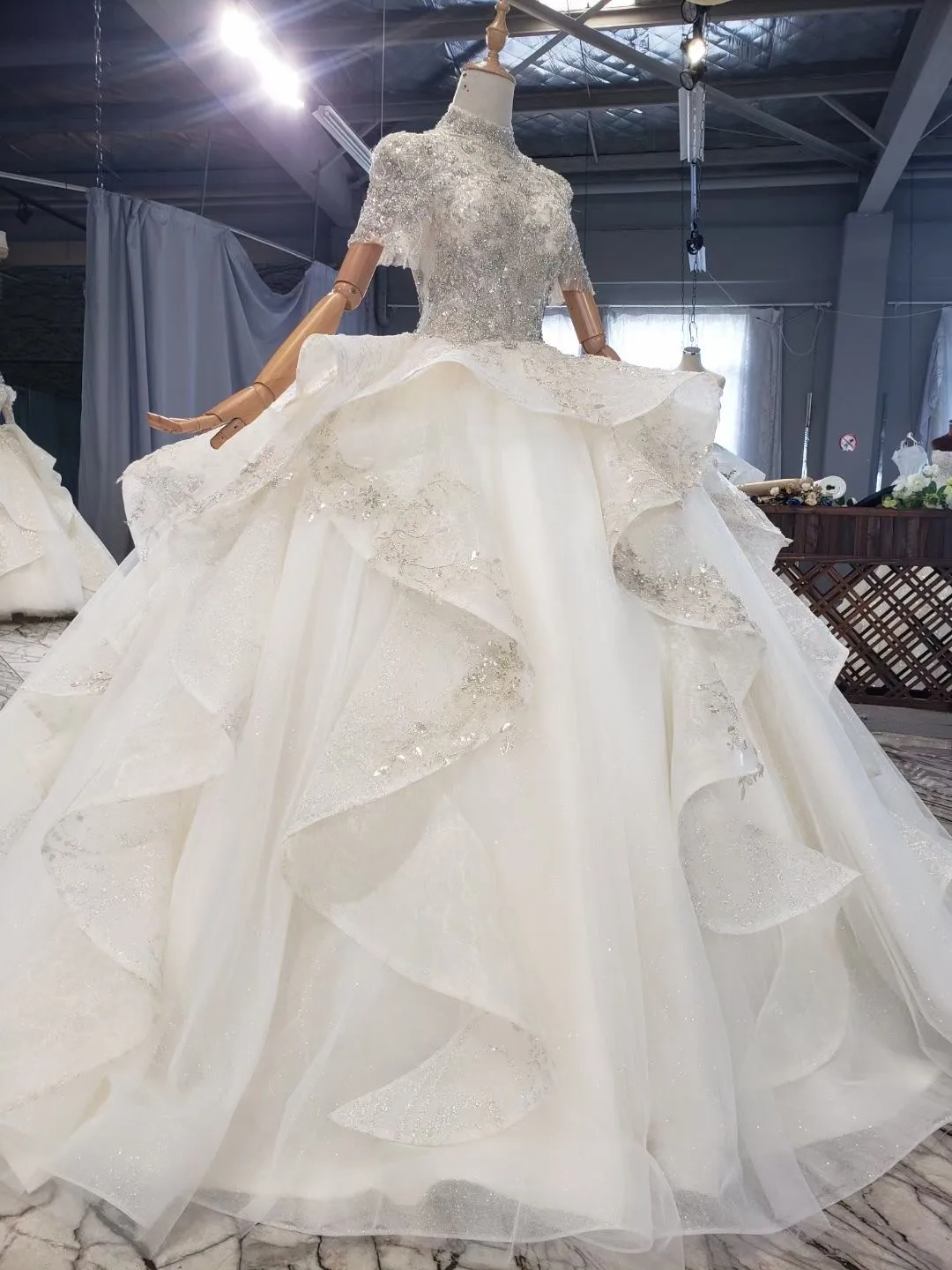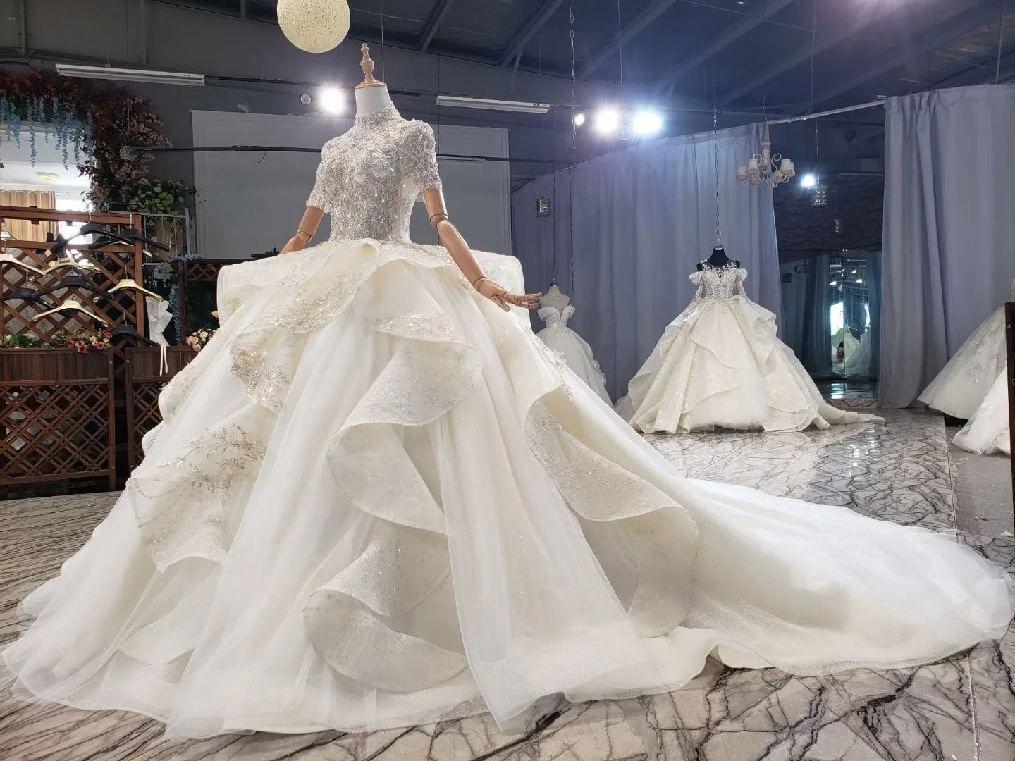 Special Offer فستان زفاف فاخر مطرز بالكامل مصنوع حسب الطلب 2021 الكشكشة تنورة Vintage بأكمام طويلة رقبة عالية بالإضافة إلى حجم فستان زفاف Discount 19% Today!