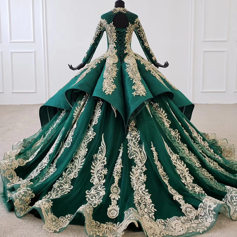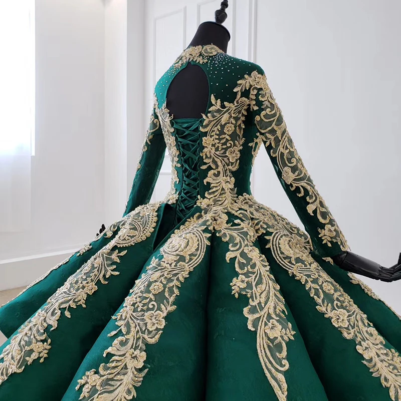 Special Offer فستان سهرة فاخر بأكمام طويلة مزين بكريستال ذهبي مزين بالخرز ورباط عربي فستان سهرة أخضر أنيق Discount 24% Today!
