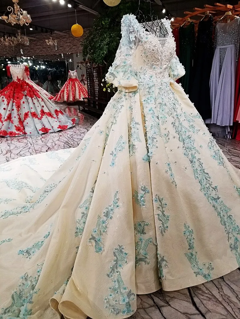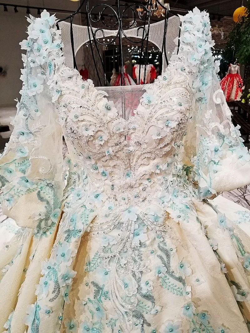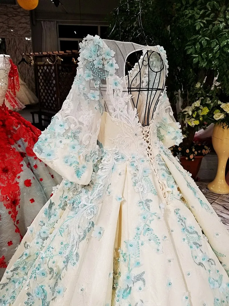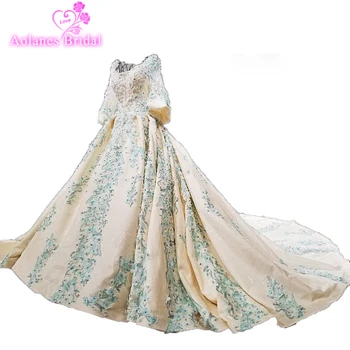 Special Offer الفاخرة الكرة ثوب الزفاف تنورة منتفخ موجة بلورات سباركلي 3/4 الأكمام الخرز الترتر الدانتيل يزين الفاخرة زي العرائس Discount 0% Today!