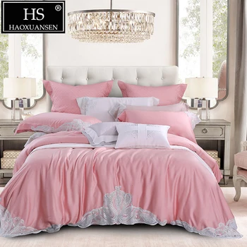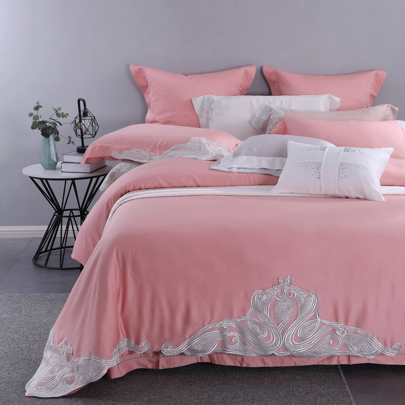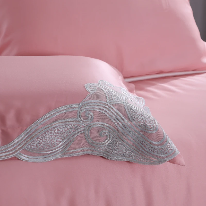 Special Offer الفاخرة ايوسل ايوسل 4 قطعة الدانتيل الفراش مجموعات الوردي 100% ايوسل الطبيعية العضوية حريري لينة غطاء لحاف مجموعة ورقة الملكة الملك حجم Discount 0% Today!