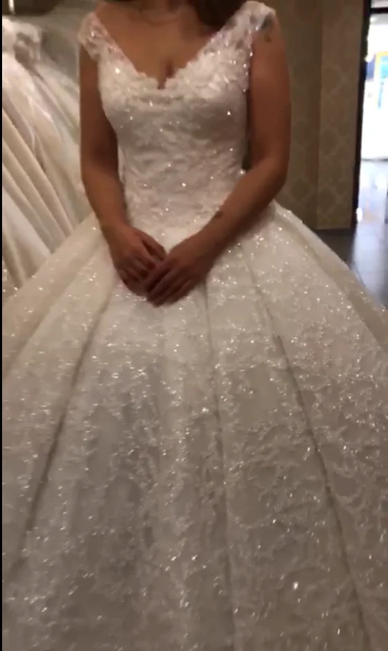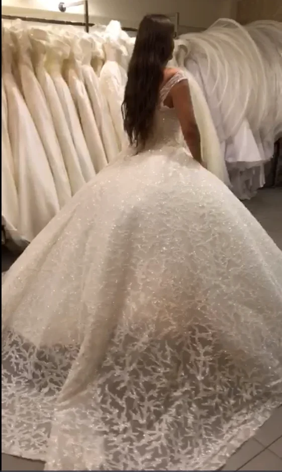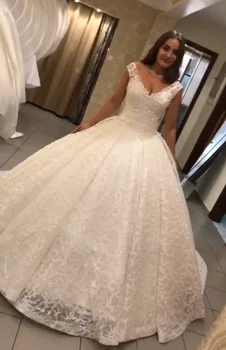 Special Offer أميرة الكرة ثوب الخامس الرقبة منفوش قطار كبير تول دانتيل زينة مطرز فساتين زفاف رسمية فاخرة زي العرائس Discount 40% Today!
