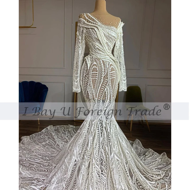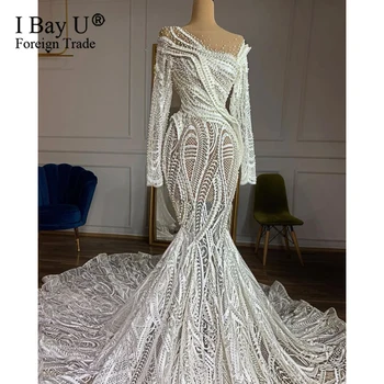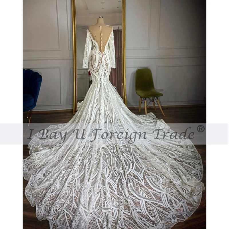 Special Offer موضة الأفريقية حورية البحر فستان الزفاف مع كامل الخرز مخصص المحاصيل القمم فستان للعرائس الخامس الظهر فستان زفاف كم طويل Discount 6% Today!