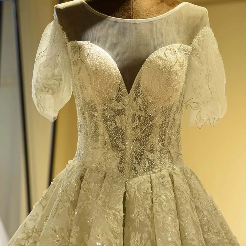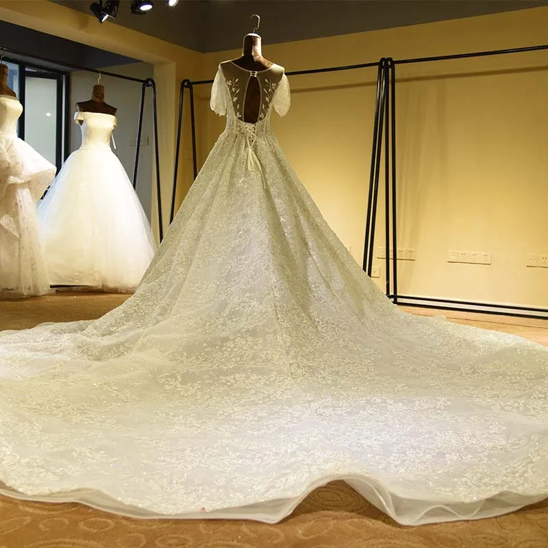 Special Offer فاخر مطرز بالخرز الدانتيل فستان الزفاف مفتوح الدانتيل حتى الظهر كم قصير يزين ثوب زفاف صور حقيقية A خط فستان عروس Discount 70% Today!