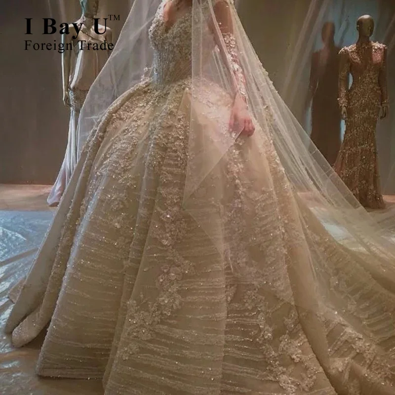 Special Offer أنا خليج ش الفاخرة الشمبانيا بلورات Appliqued Rhinestoned الكرة بثوب الحبيب قبالة الكتف فساتين الزفاف Discount 0% Today!