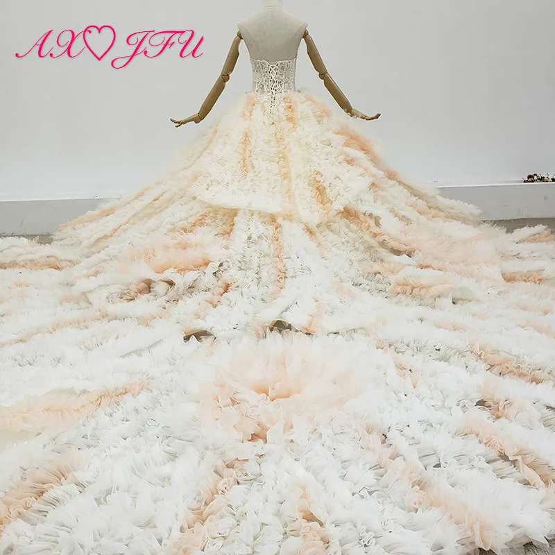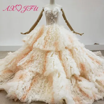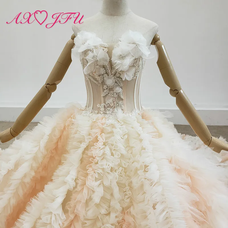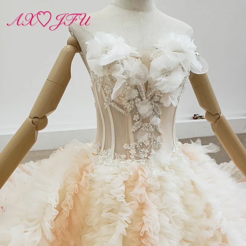 Special Offer AXJFU الفاخرة الأميرة الديكور كريستال الوهم اليدوية حمالة زهرة بيضاء الشمبانيا الدانتيل فستان الزفاف 100% صور حقيقية Discount 50% Today!