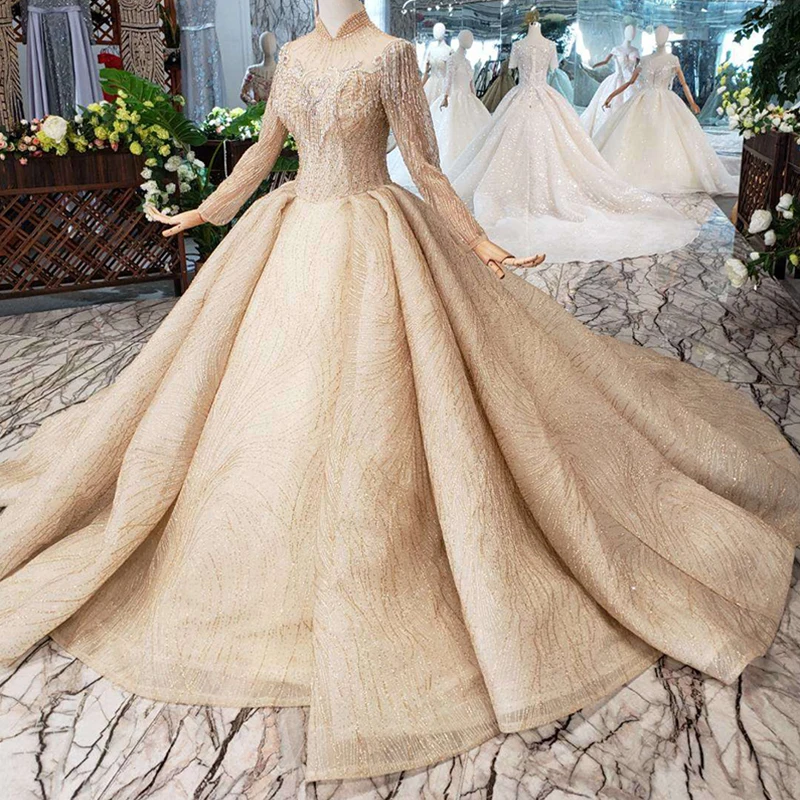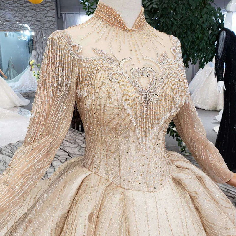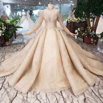 Special Offer BGW HT5625 فساتين زفاف طويلة الأكمام الشمبانيا عالية الرقبة مطرز فساتين زفاف الكرة ثوب ثقب المفتاح الخلفي ثوب زفاف Discount 56% Today!