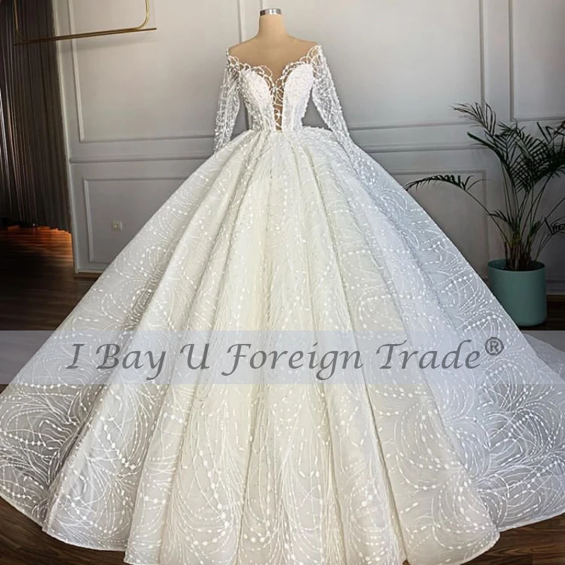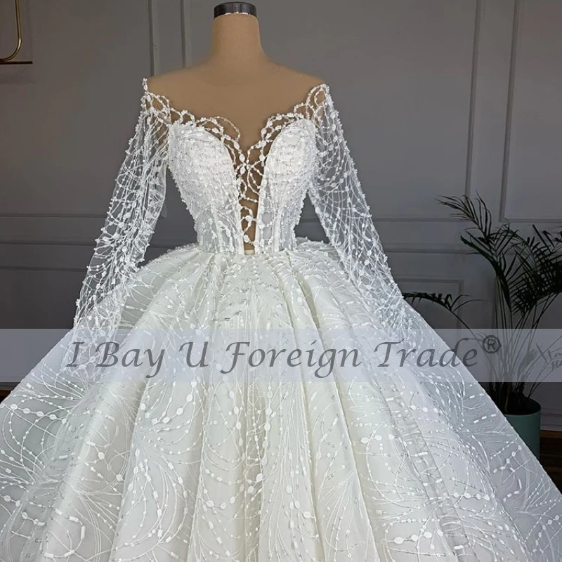 Special Offer فستان زفاف عربي لؤلؤي فستان زفاف عاجي رداء De Soirée De Mariage بأكمام طويلة فاخر يدوي فستان زفاف Vestidos De Novia Discount 5% Today!
