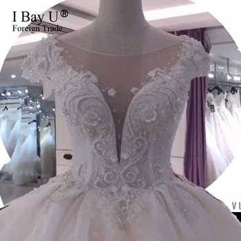 Special Offer حجم كبير الطيات صور حقيقية الخرز الأبيض تول فساتين زفاف فاخرة شير الرقبة زي العرائس Gelinlik 2020 رداء دي ماريج Discount 0% Today!