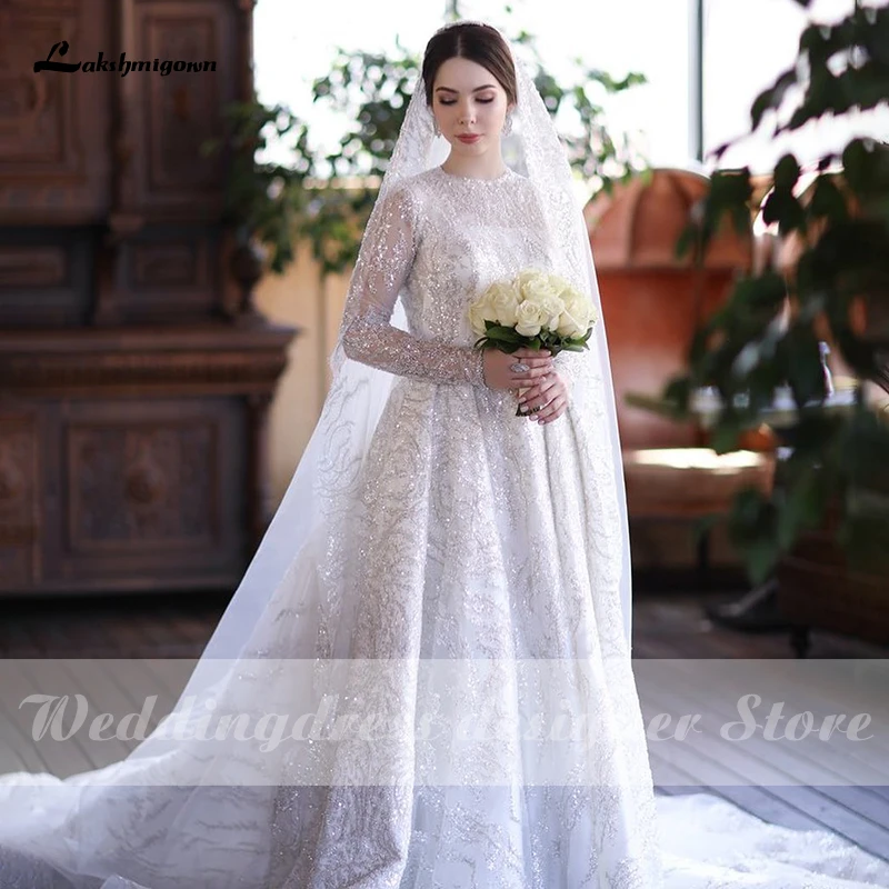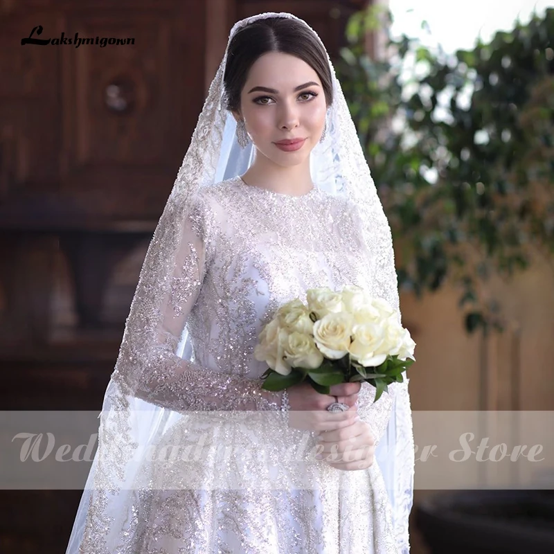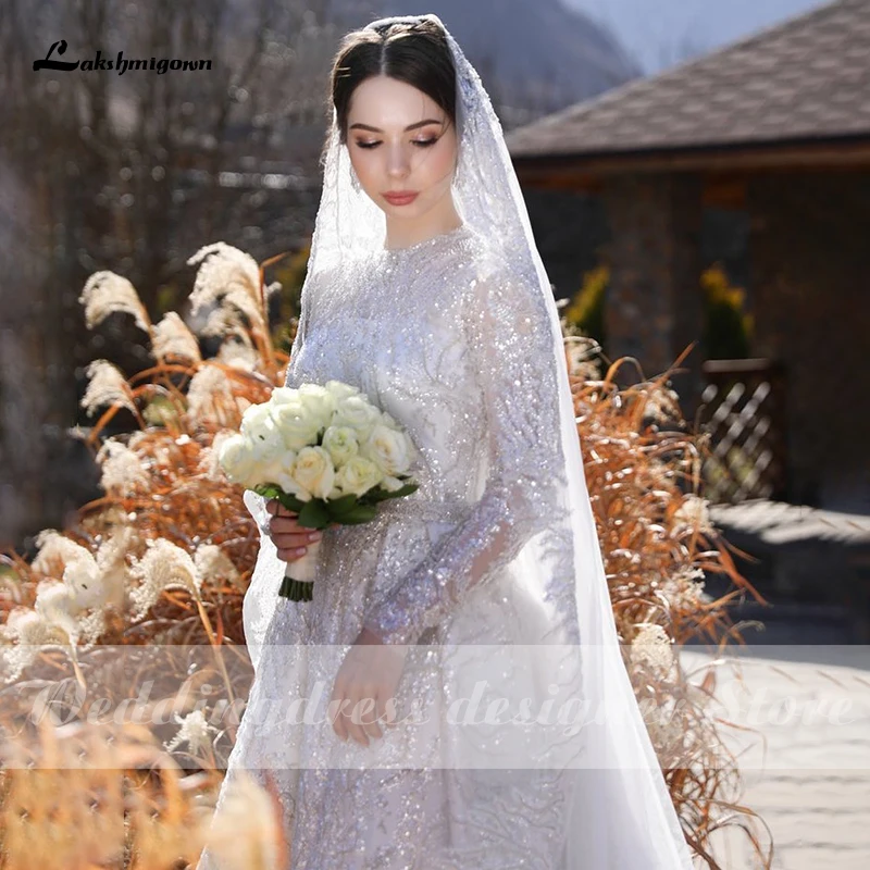Special Offer فساتين زفاف إسلامية مطرزة فاخرة مع حجاب ذيل محكمة Gelinlik Modeller A خط فستان زفاف في دبي أماندا نوفيا Discount 20% Today!