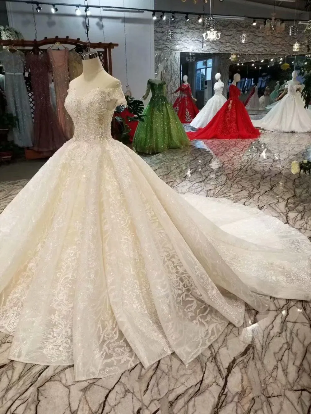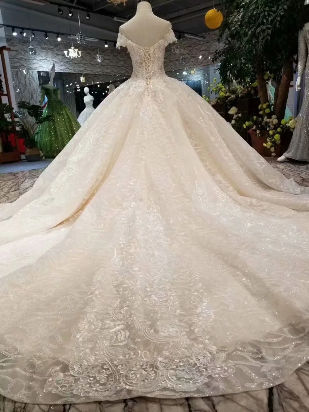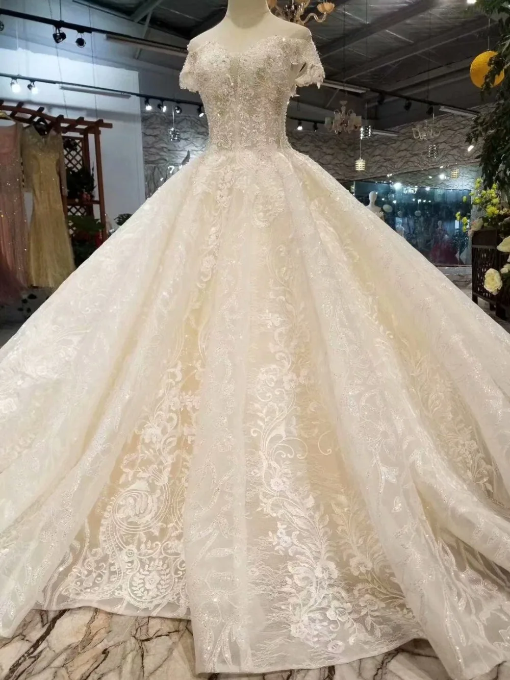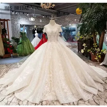 Special Offer H & S الزفاف قصيرة الأكمام فستان الزفاف الدانتيل يزين بلورات أثواب الزفاف قبالة الكتف فساتين الزفاف Discount 0% Today!