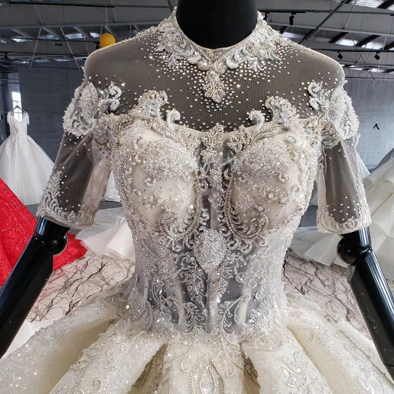 Special Offer HTL1009 الكرة ثوب الزفاف حجم كبير حبة الكريستال س الرقبة قصيرة الأكمام فساتين الزفاف للعروس مع كم Vestido Novia Discount 50% Today!