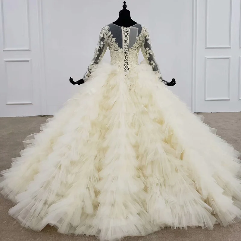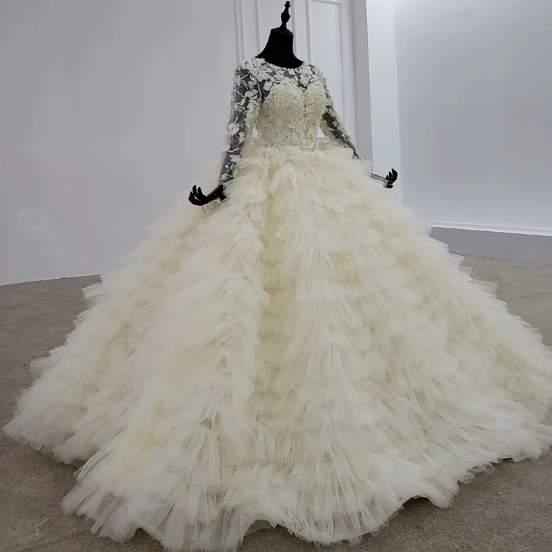 Special Offer فستان زفاف HTL1202 2020 جديد فاخر بأربطة من الخلف متدرج فستان زفاف مزين بأكمام طويلة Vestido Novia Sirena Encaje Discount 55% Today!