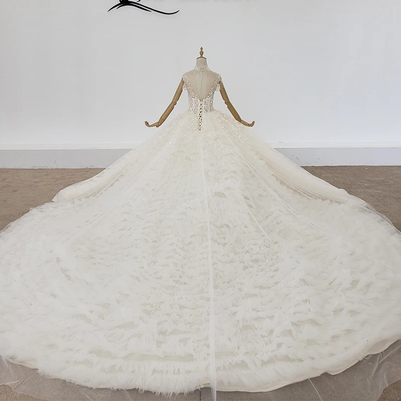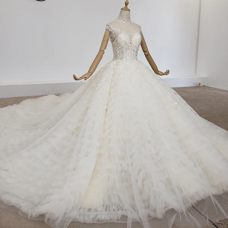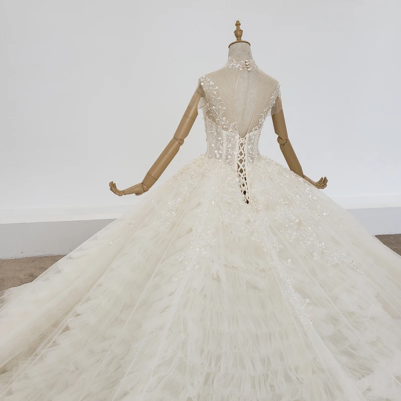 Special Offer HTL1327 فستان الزفاف عالية الرقبة بوهو فستان الزفاف قصيرة الأكمام فستان الزفاف حجم كبير فساتين عرس المتدرج Discount 55% Today!