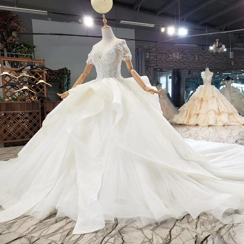 Special Offer HTL1667 فستان زفاف مزين باللؤلؤ والترتر اللامع 2020 أكمام قصيرة منتفخة بأربطة من الخلف Bestido De Novia Discount 55% Today!