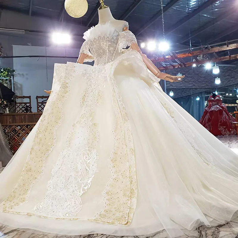 Special Offer HTL1827 الاسراف قارب الرقبة كريستال مطرزة الخرز فستان الزفاف 2020 قصيرة الأكمام زين فستاين سهرة/فساتين الحفلات Discount 55% Today!